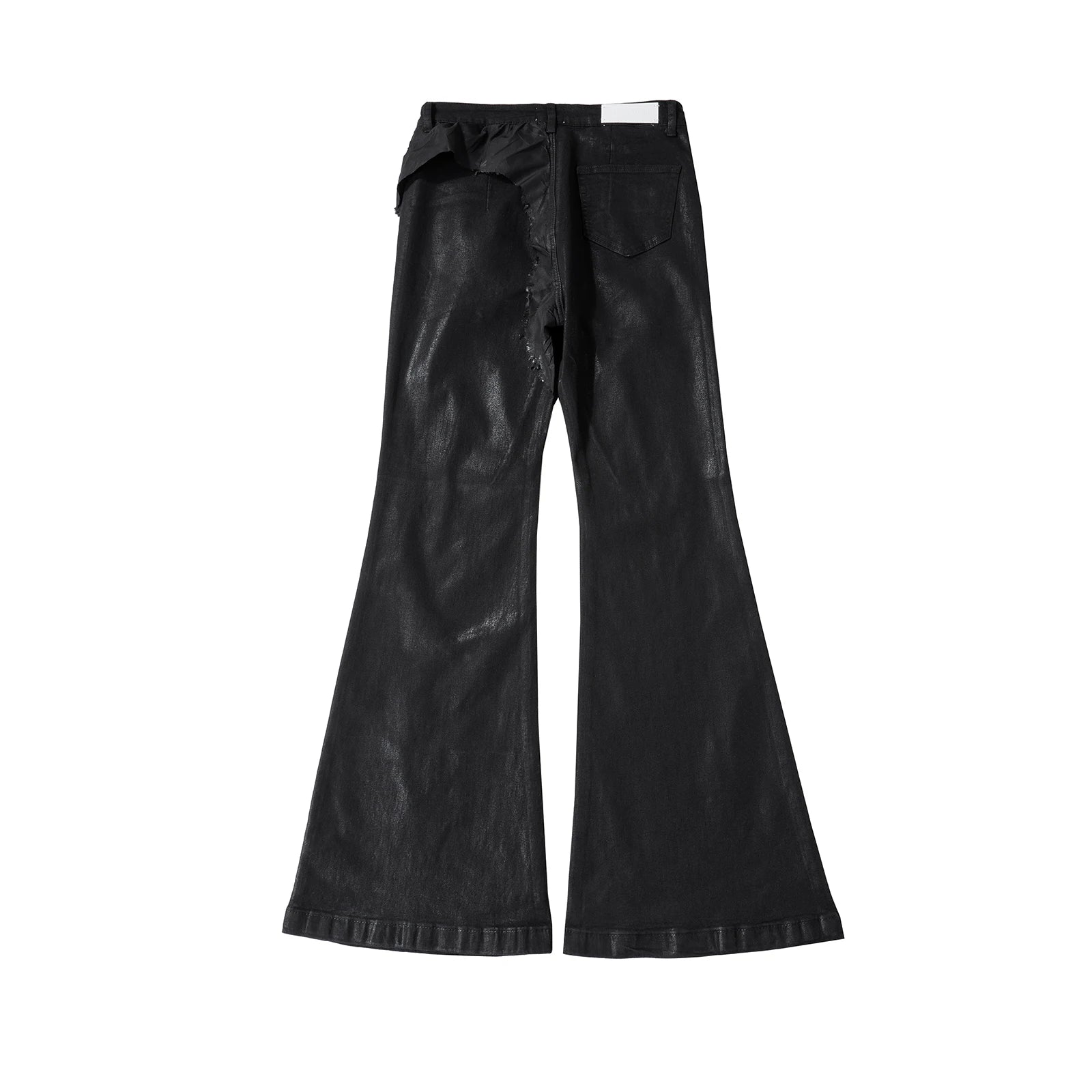 Bonsir Y2k Streetwear Wax Leather Strecth Jeans for Men and Women Ropa Hombre Baggy Flare Pants Oversized Straight Denim Trousers