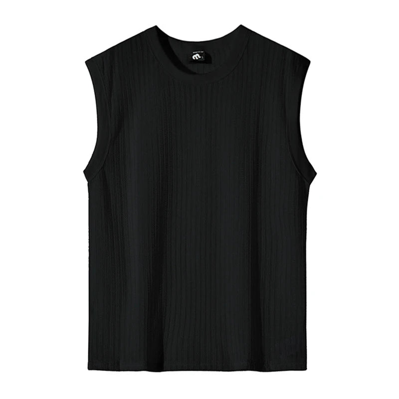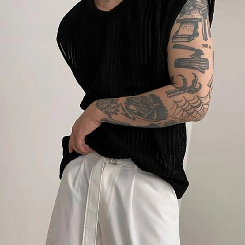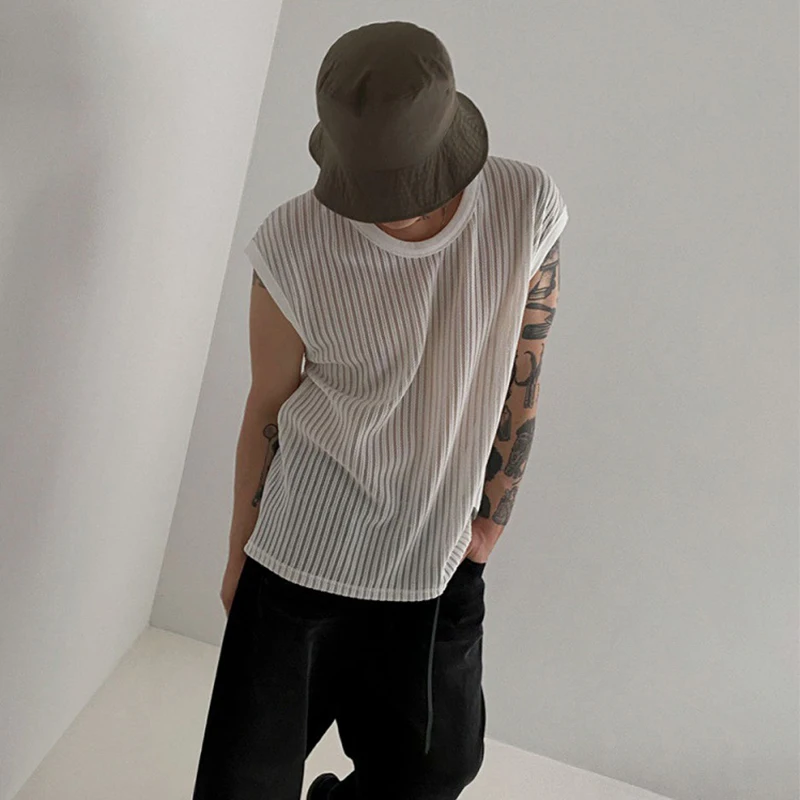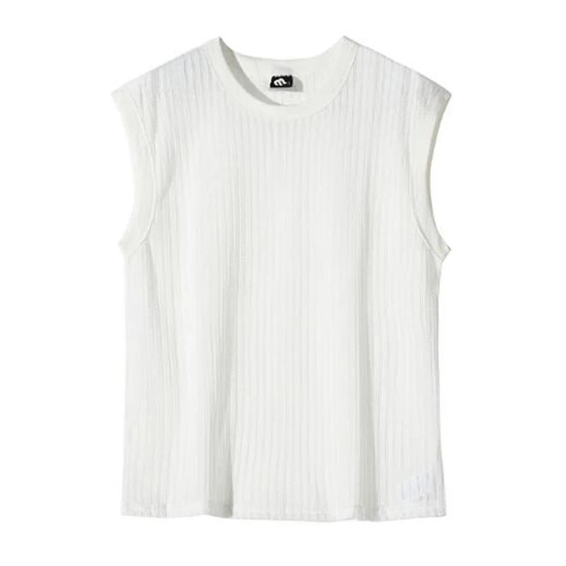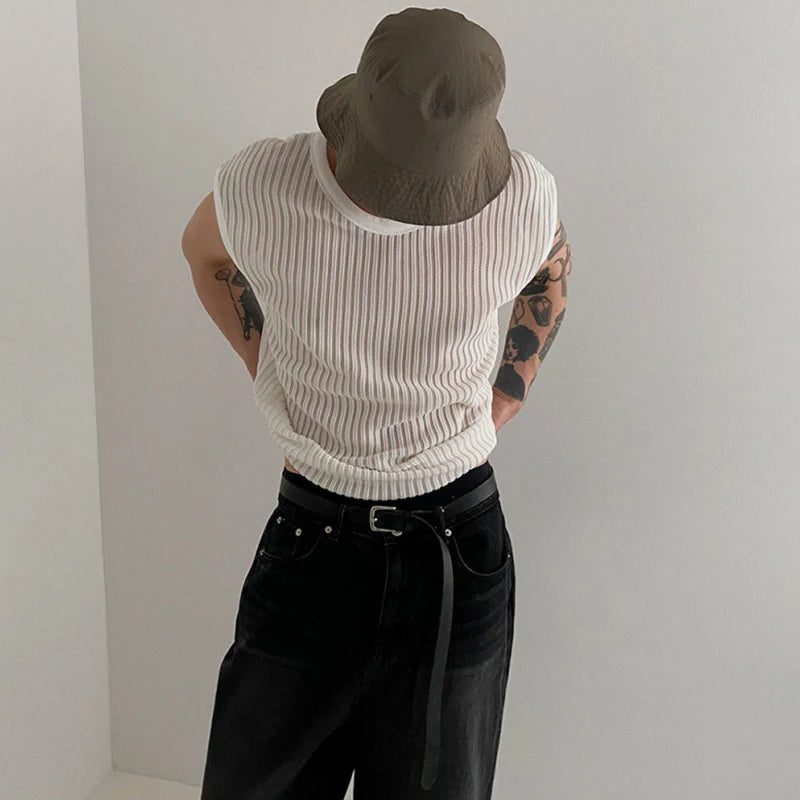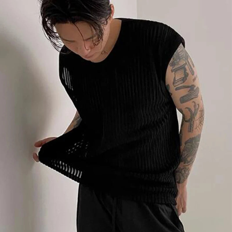 BONSIR - Y2K Style Hollow Out Knitted Tank Tops Men Summer New Fashion Streetwear O Neck Sleeveless Knit Vest Leisure Mens Knit Camisoles