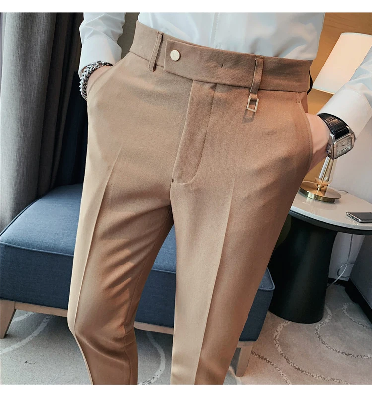 Bonsir Autumn New Solid Straight Casual Pant Men's Simple Versatile Business Social Trousers Formal Office Slim Fit Suit Pants