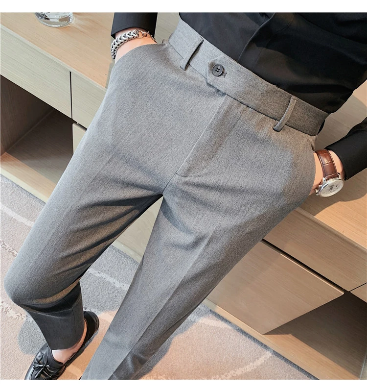Bonsir Autumn Winter New Embroidered Business Formal Pants Men Fashion Wedding Slim Fit Trousers High Quality Solid Social Suit Pants