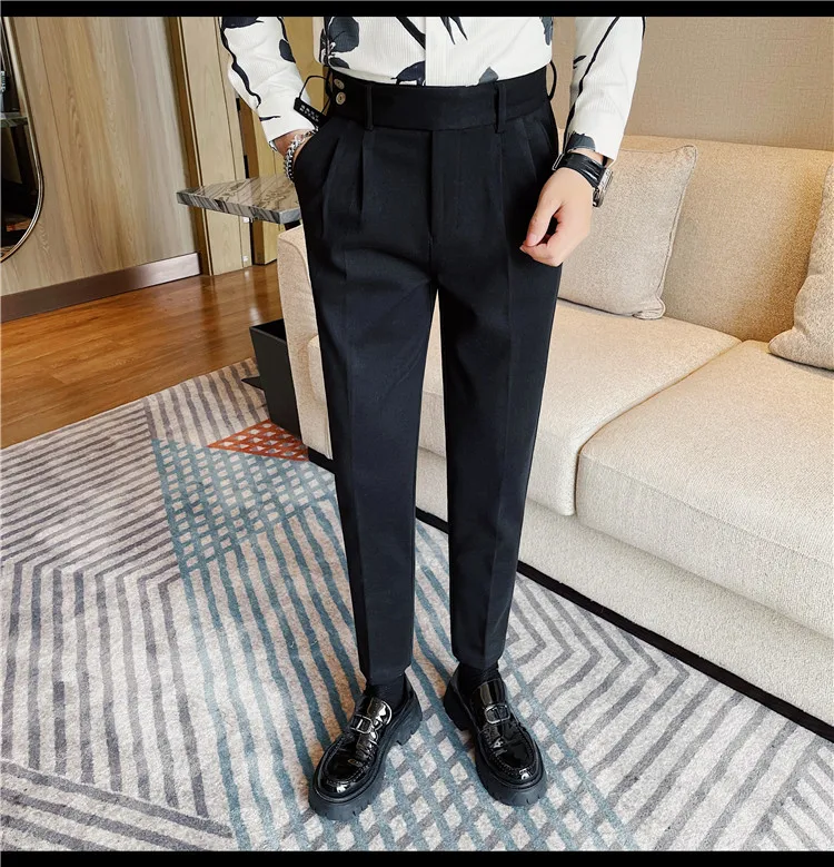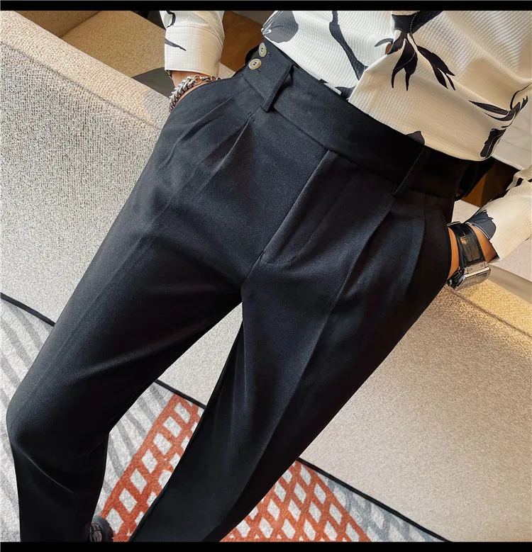 Bonsir Autumn Winter Thickened Fashion Casual Suit Pants Men Slim Fit Straight Pant Formal Business Neapolitan Social Office Trousers