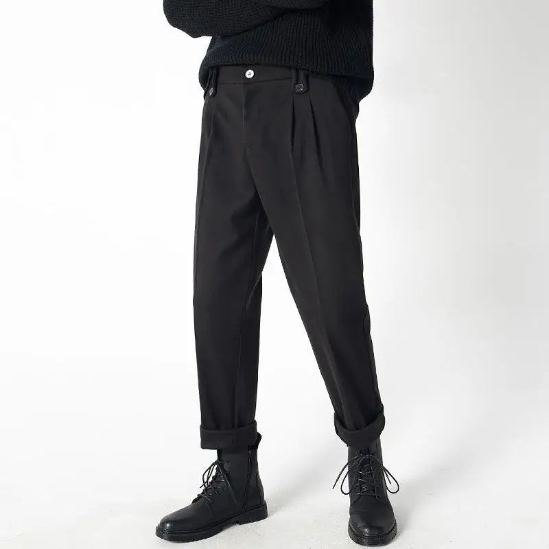 BONSIR - Autumn Winter Woolen Business Dress Pants Men Elastic Waist Streetwear Casual Trousers Formal Social Suit Pants Costume Homme