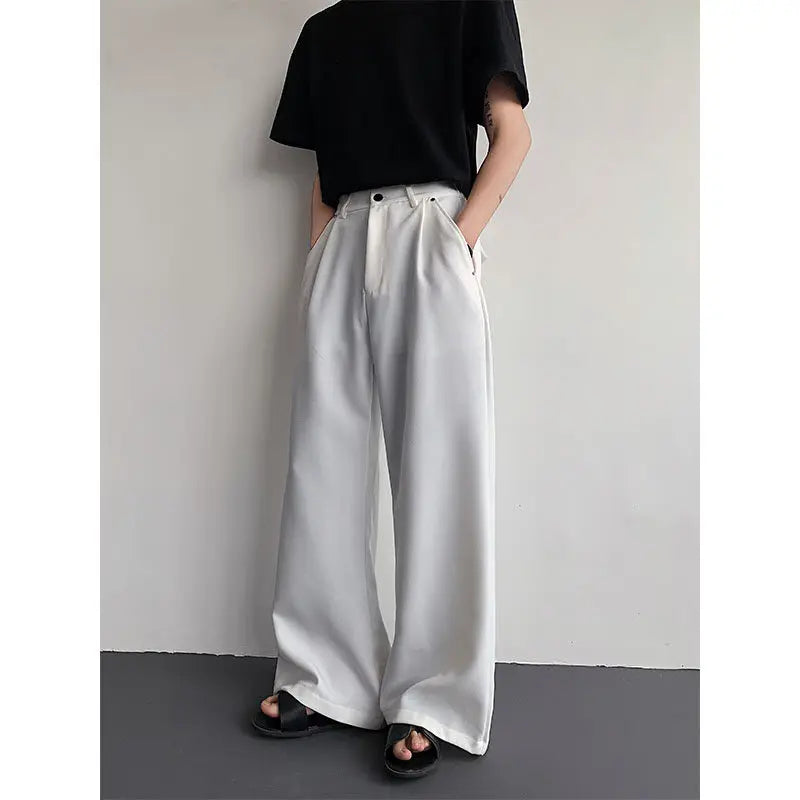 BONSIR - Baggy Black Suit Pants Mens Oversized Society Mens White Dress Pants Korean Loose Wide Leg Pants Mens Office Formal Trousers