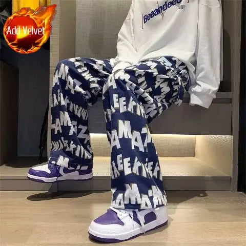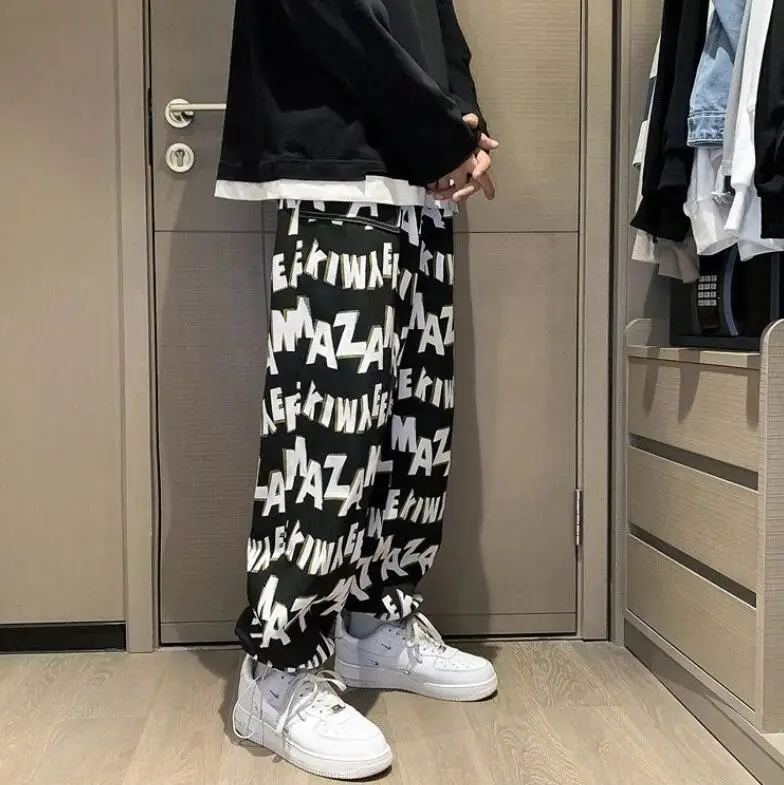 Bonsir Baggy Men's Sweatpants Straight Casual Trousers Tracksuit Bottoms Jogger Summer Stylish Sport Plain Loose Y2k Man Sweat Pants