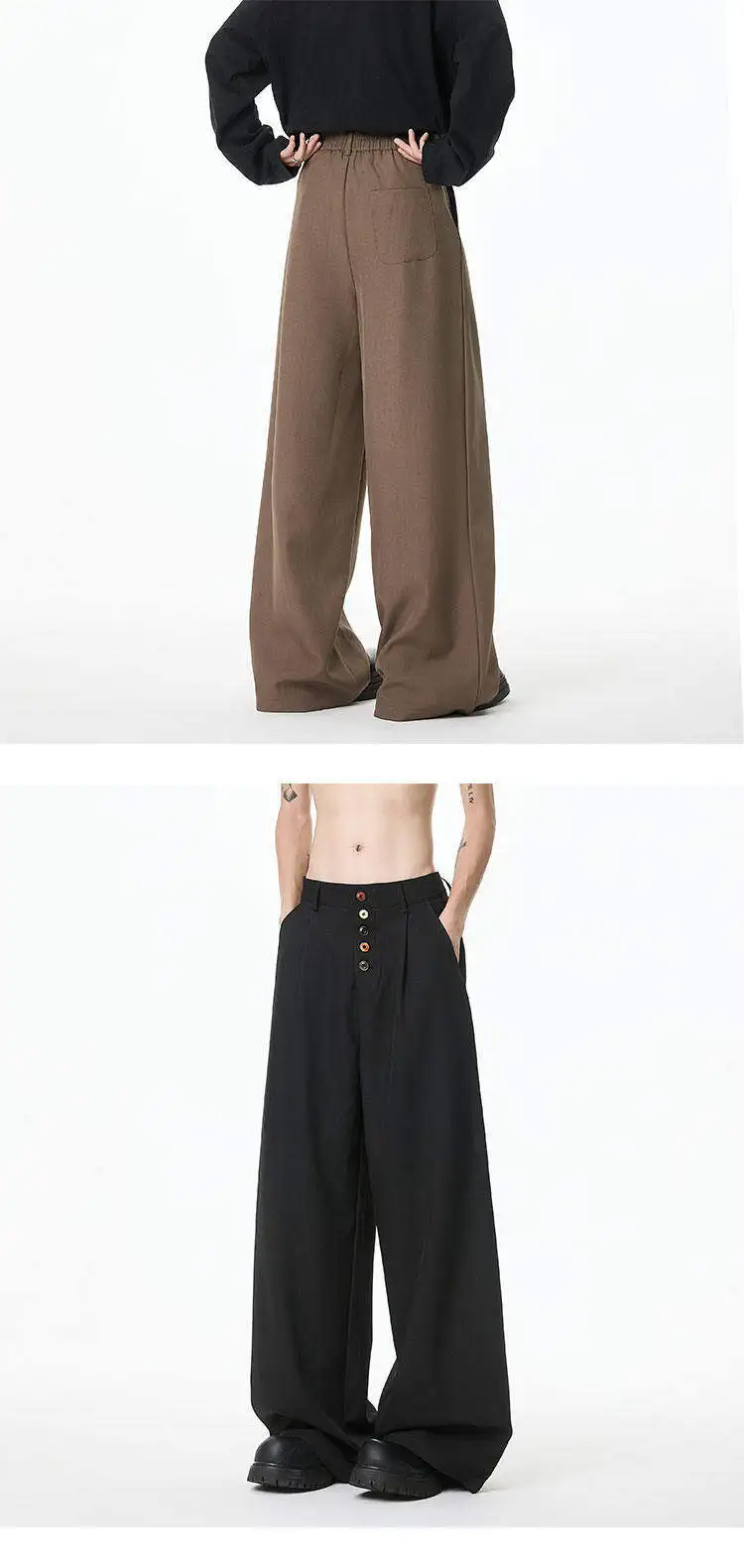 BONSIR - Brown Suit Pants Men Oversized Fashion Society Mens Black Dress Pants Korean Loose Wide Leg Pants Mens Office Formal Trousers
