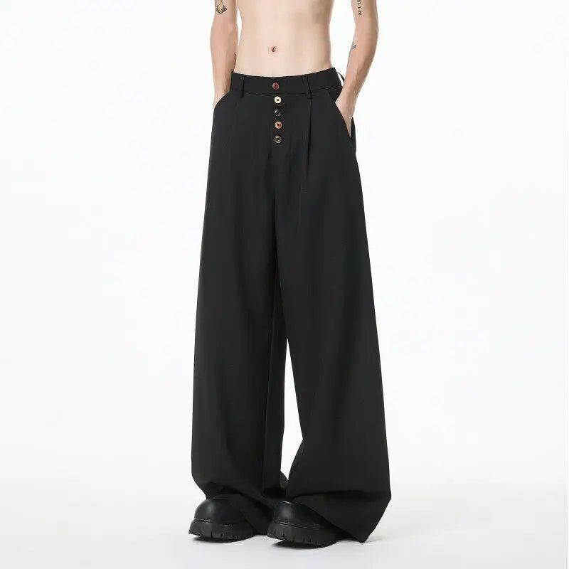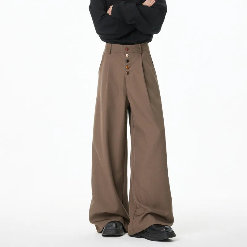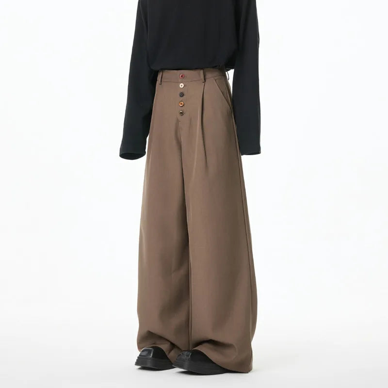 BONSIR  - Brown Suit Pants Men Oversized Fashion Society Mens Black Dress Pants Korean Loose Wide Leg Pants Mens Office Formal Trousers
