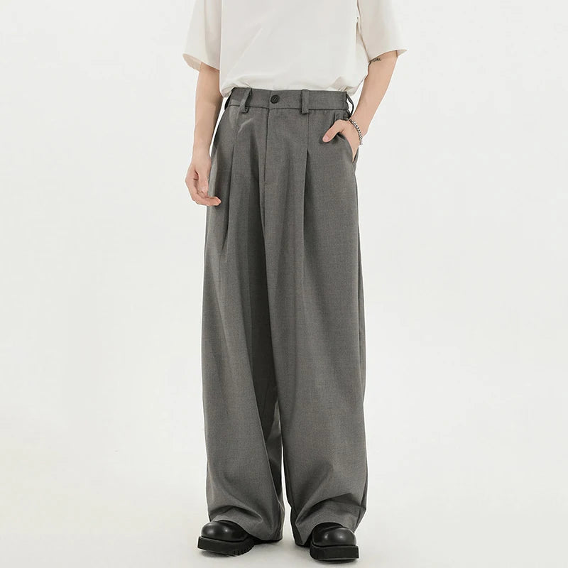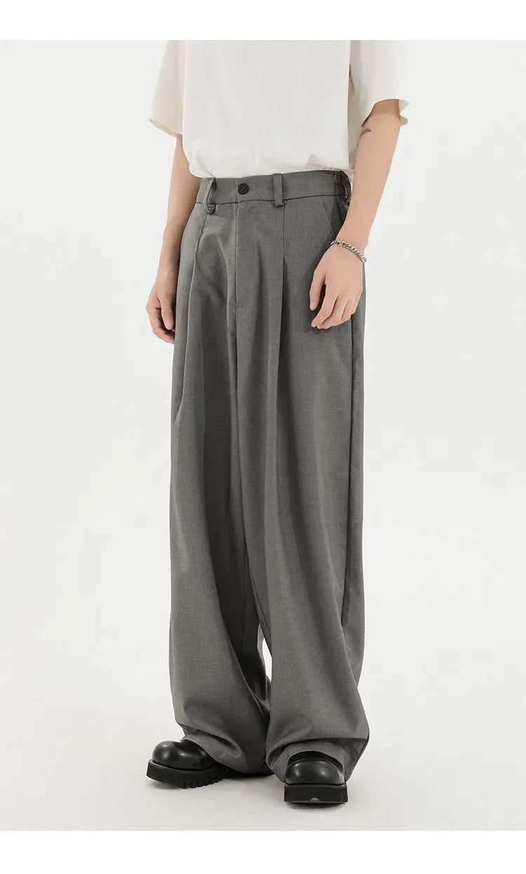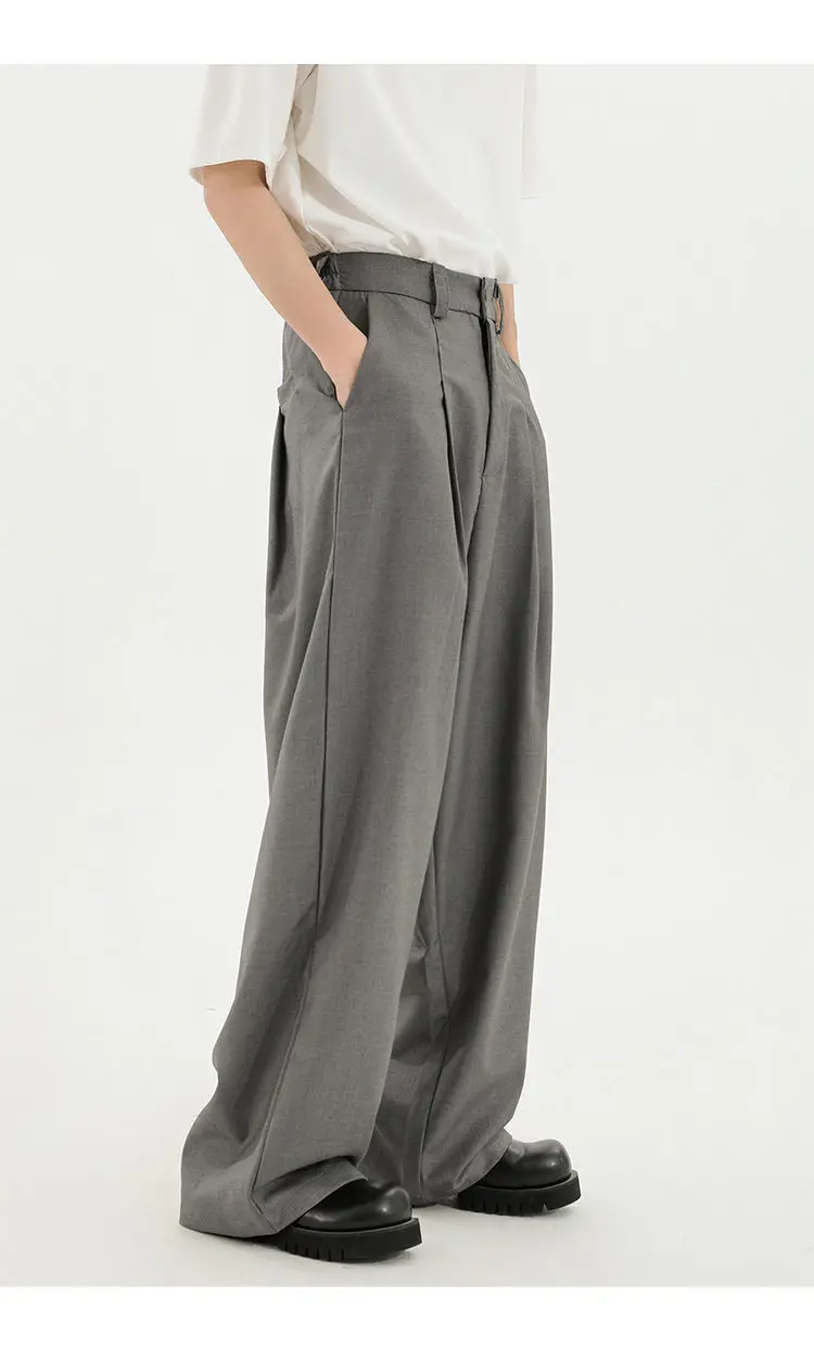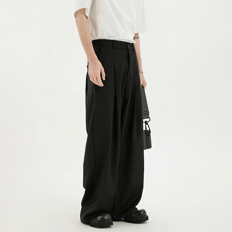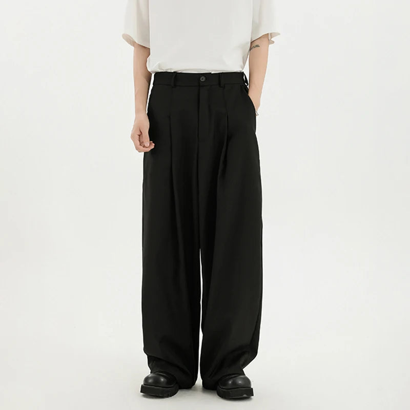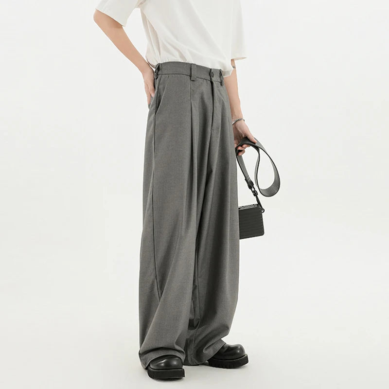 BONSIR - Business Casual Men's Suit Pants Solid Color Pleated Design Wide Leg Trousers Loose Straight Male Bottom Simple 24K5370