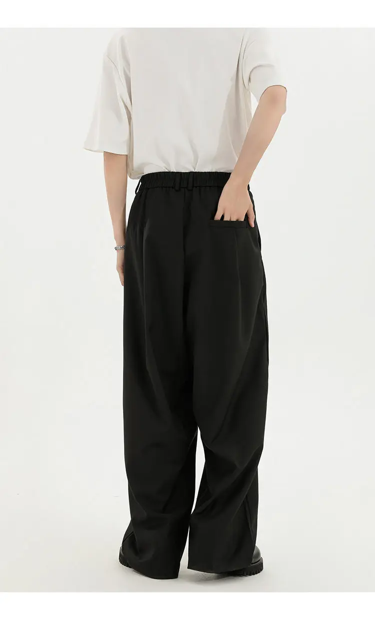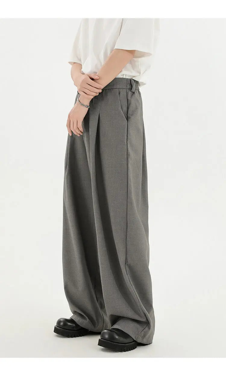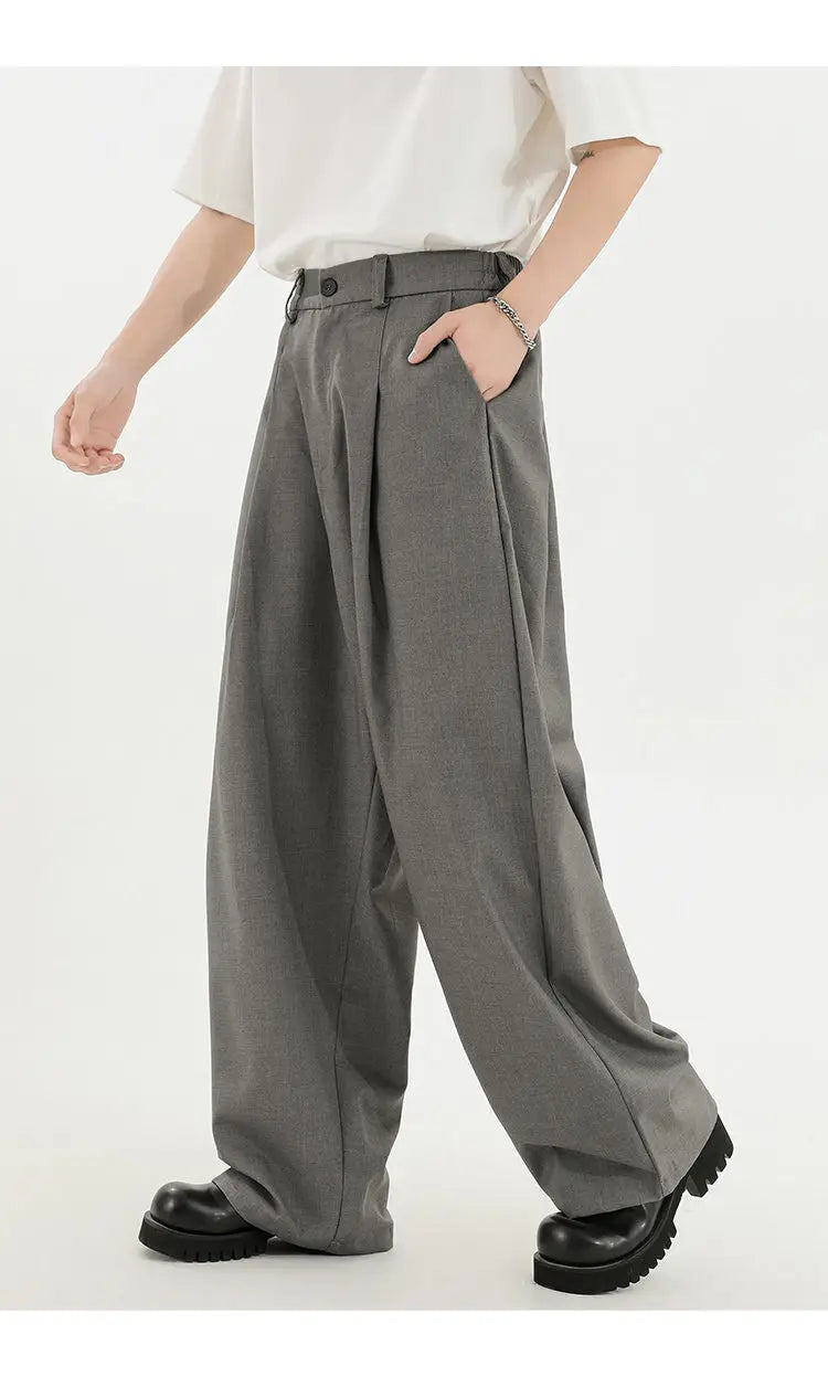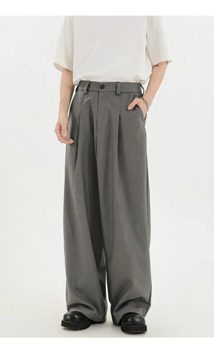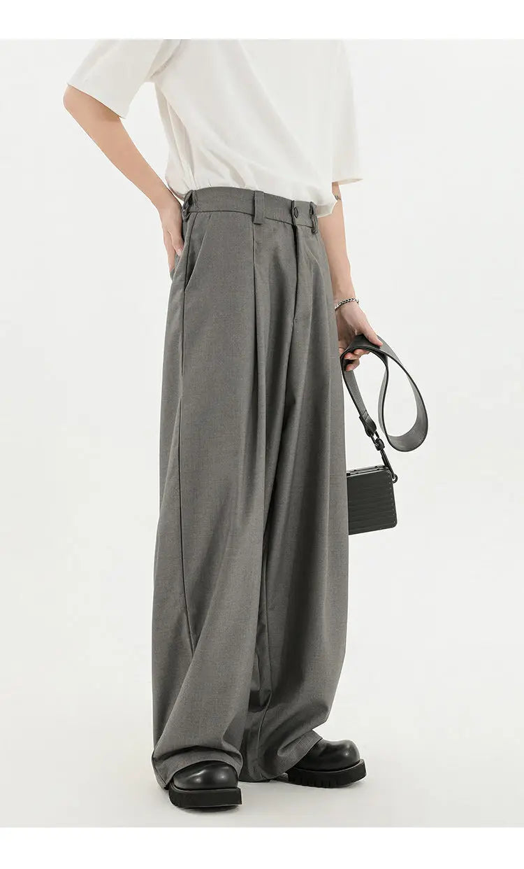 BONSIR - Business Casual Men's Suit Pants Solid Color Pleated Design Wide Leg Trousers Loose Straight Male Bottom Simple 24K5370