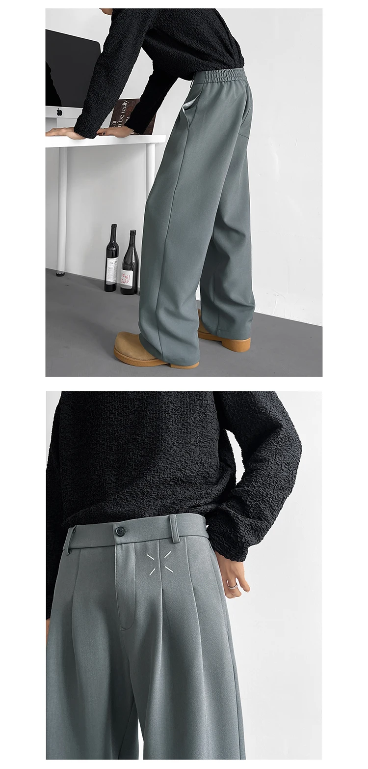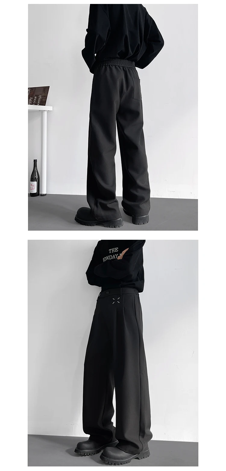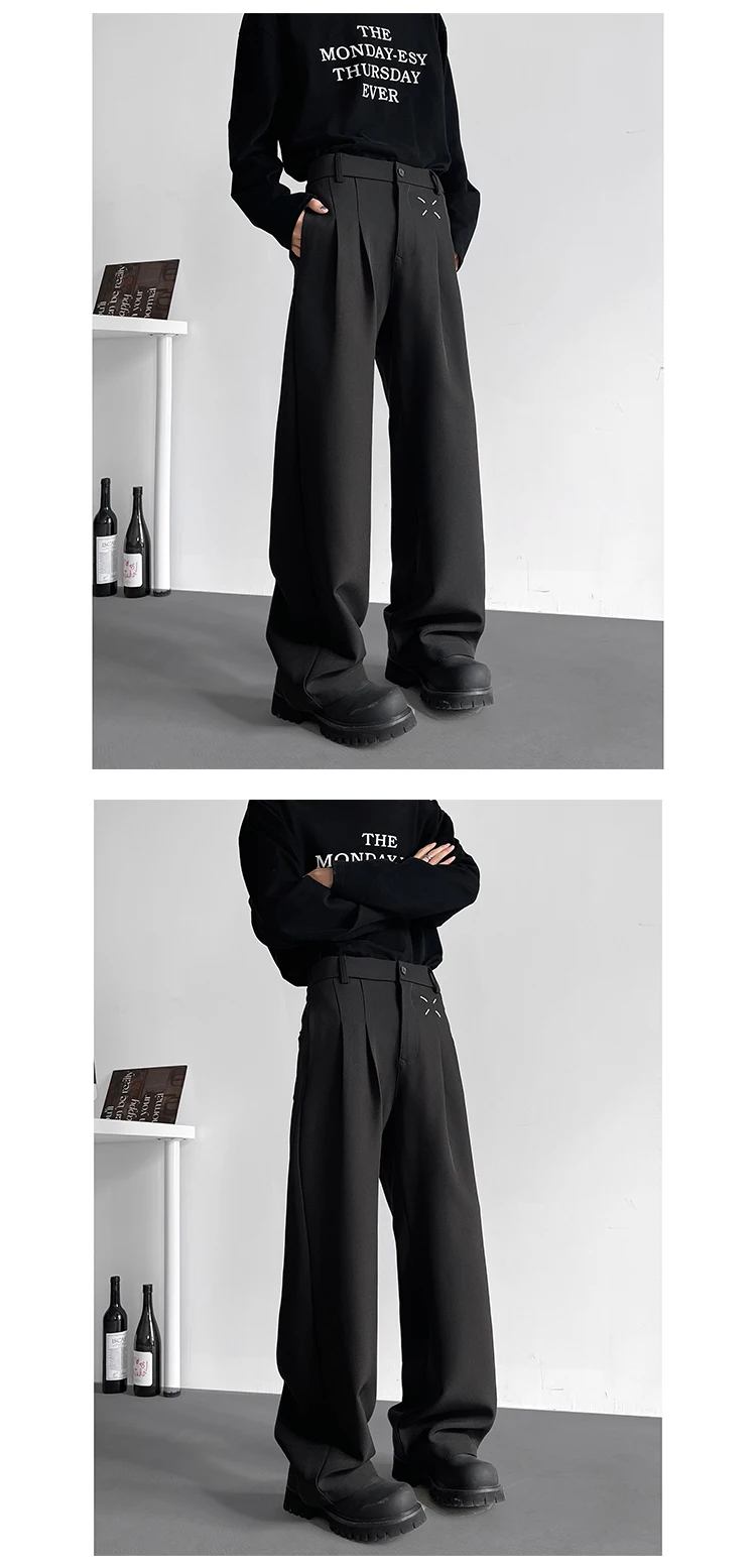 BONSIR  -  Grey Black Suit Pants Men Fashion Society Mens Dress Pants Korean Loose Straight Pants Mens Office Formal Trousers Plus Size