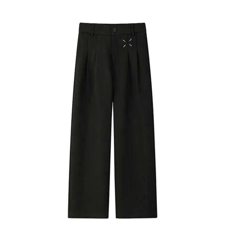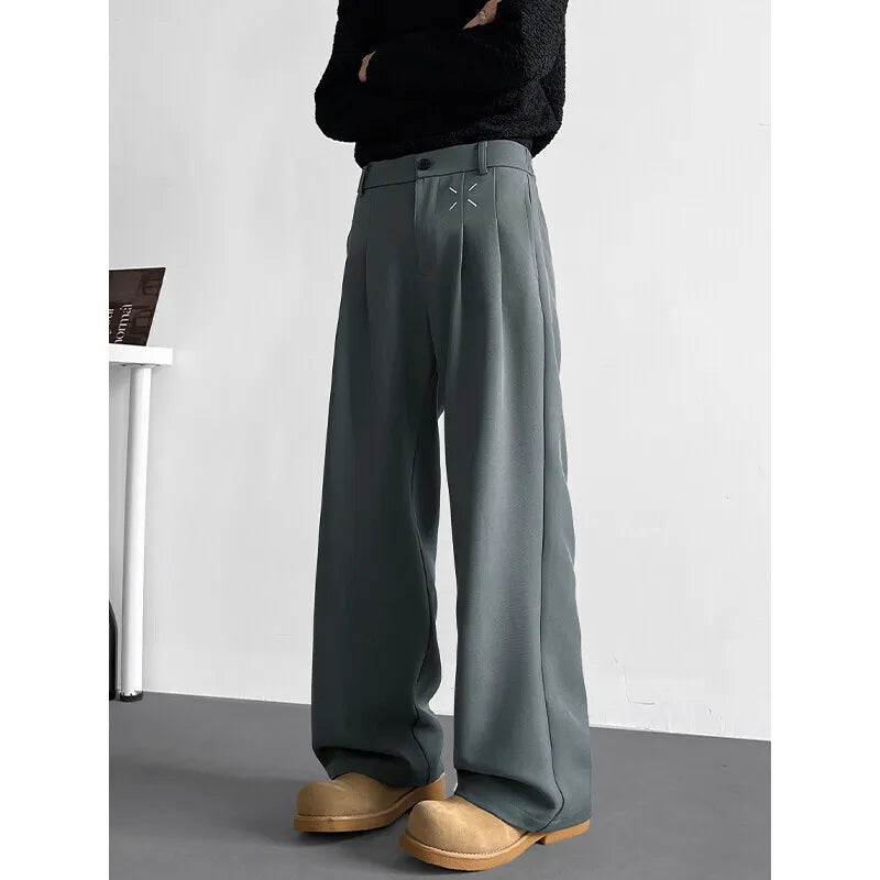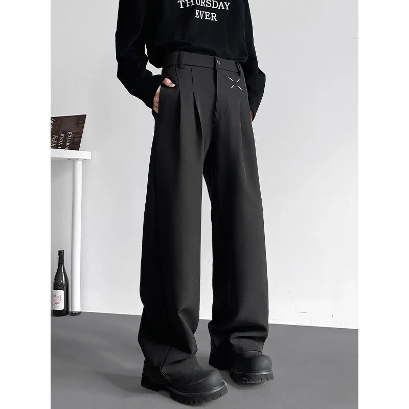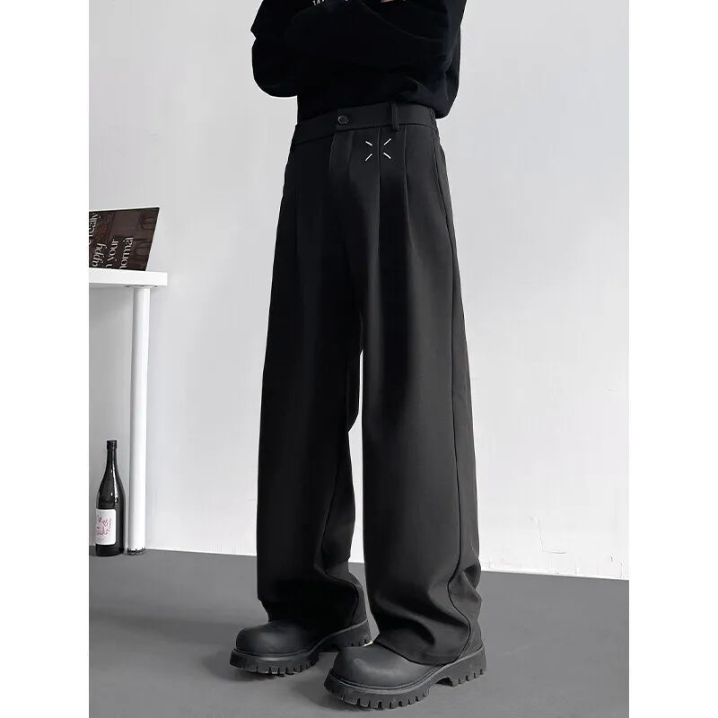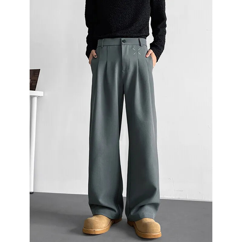 BONSIR  -  Grey Black Suit Pants Men Fashion Society Mens Dress Pants Korean Loose Straight Pants Mens Office Formal Trousers Plus Size
