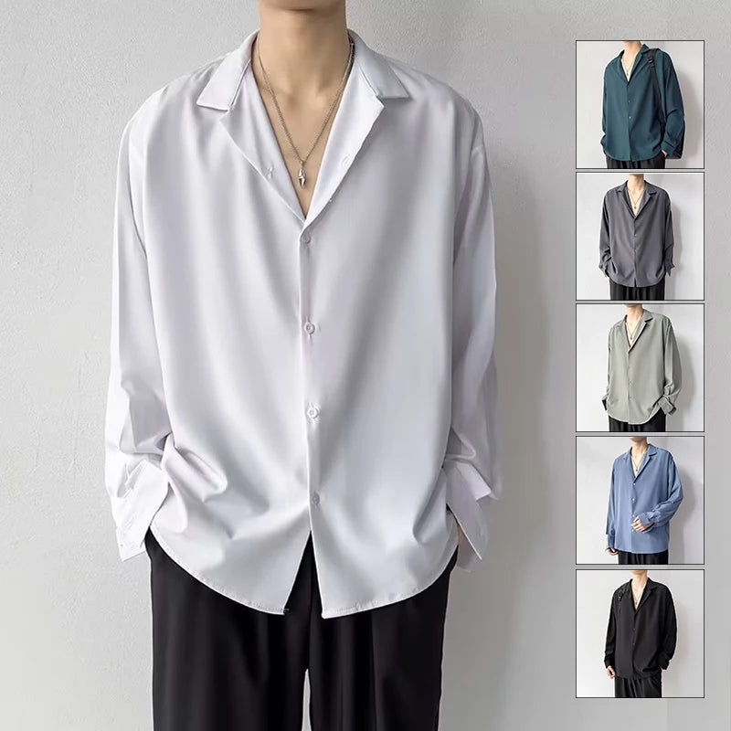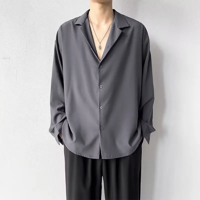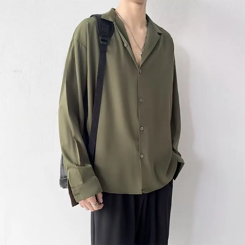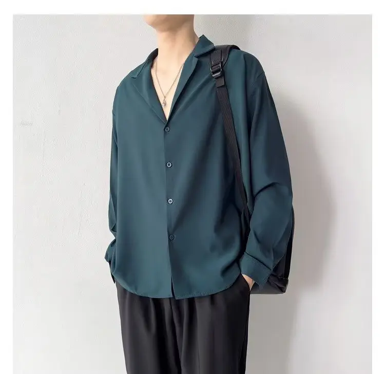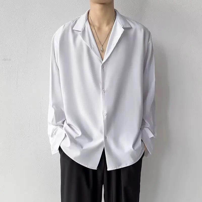 BONSIR - Korean Fashion Men's Shirt Spring Summer New Loose Casual Long-sleeved Lapel High Street Male Suit Shirt White Black Gray Green