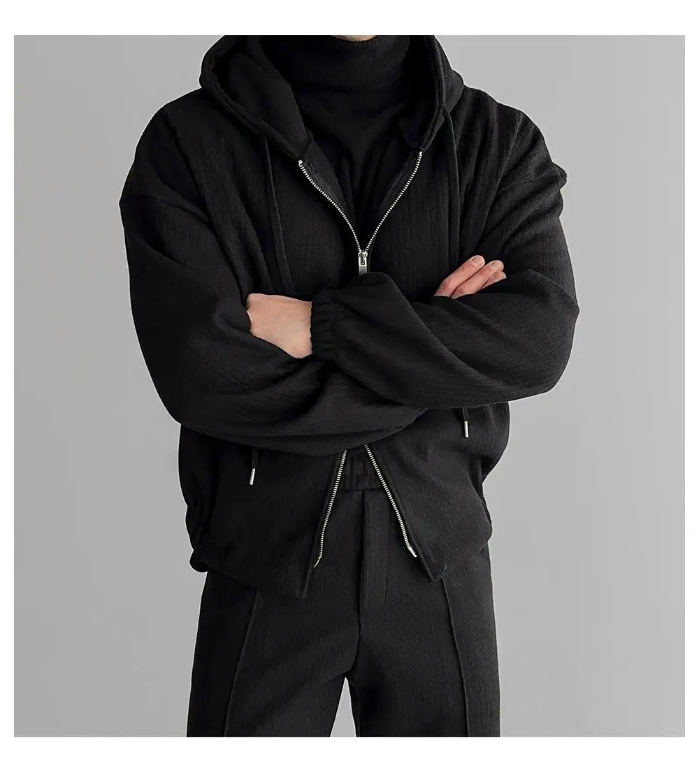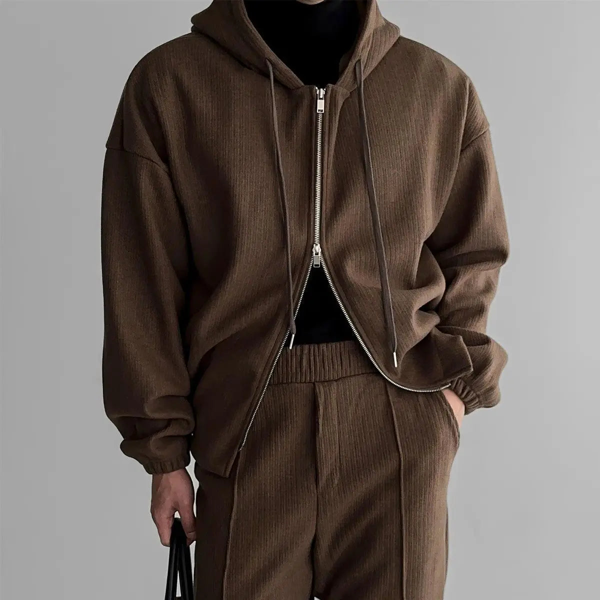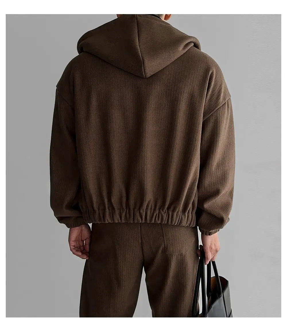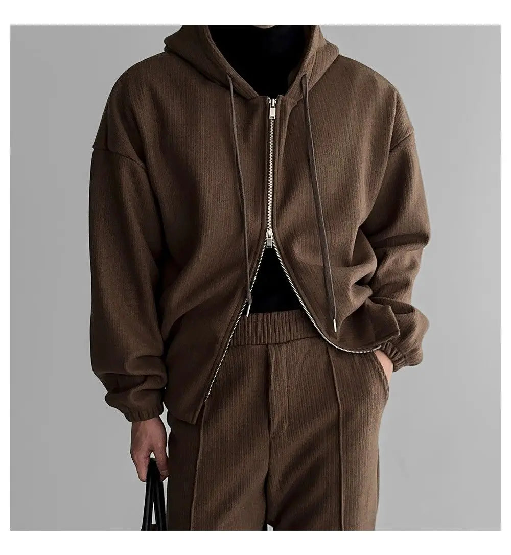 BONSIR - Maillard casual sports suit men's spring and autumn heavy hooded sweatshirt cardigan splicing
