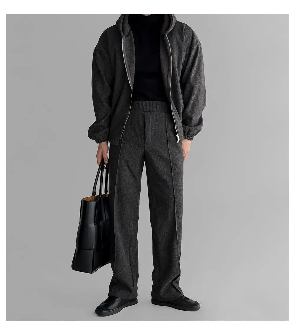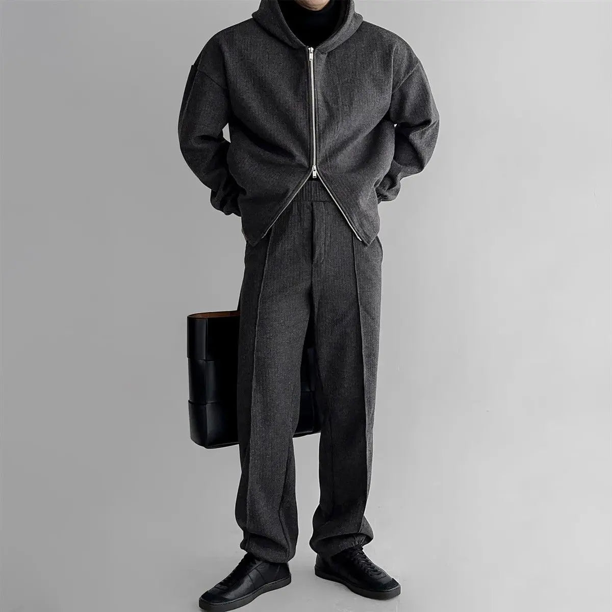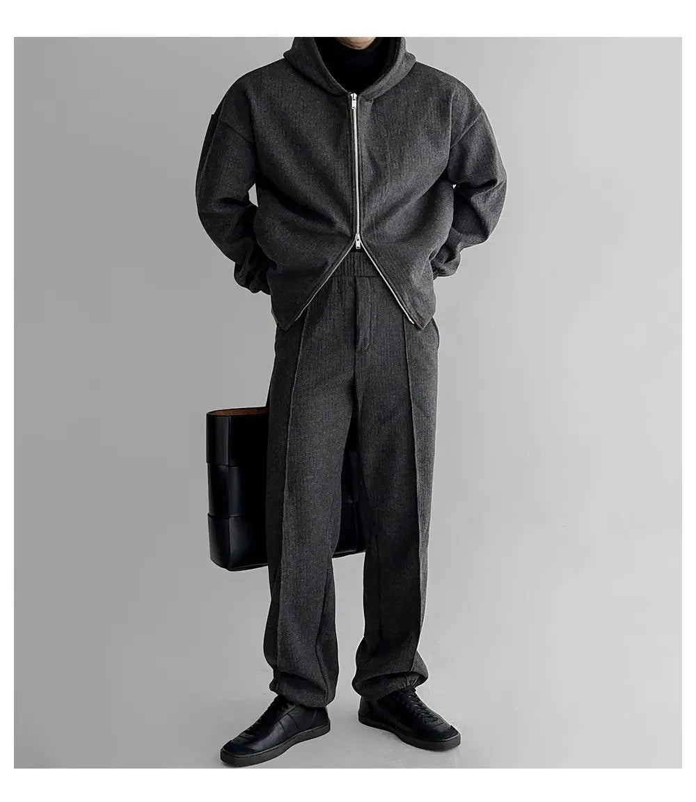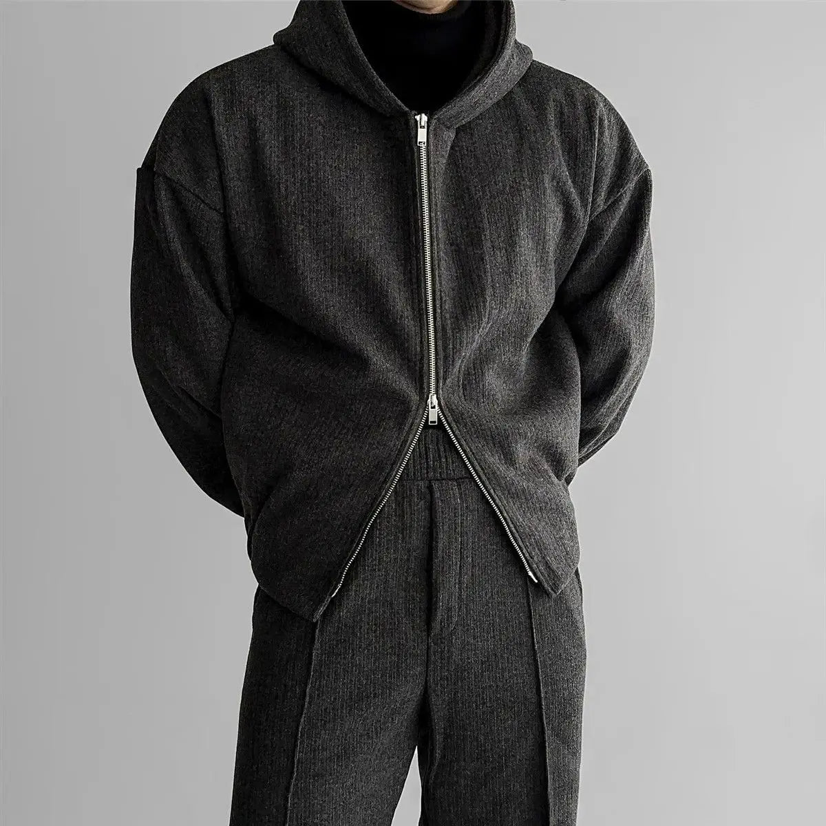 BONSIR - Maillard casual sports suit men's spring and autumn heavy hooded sweatshirt cardigan splicing