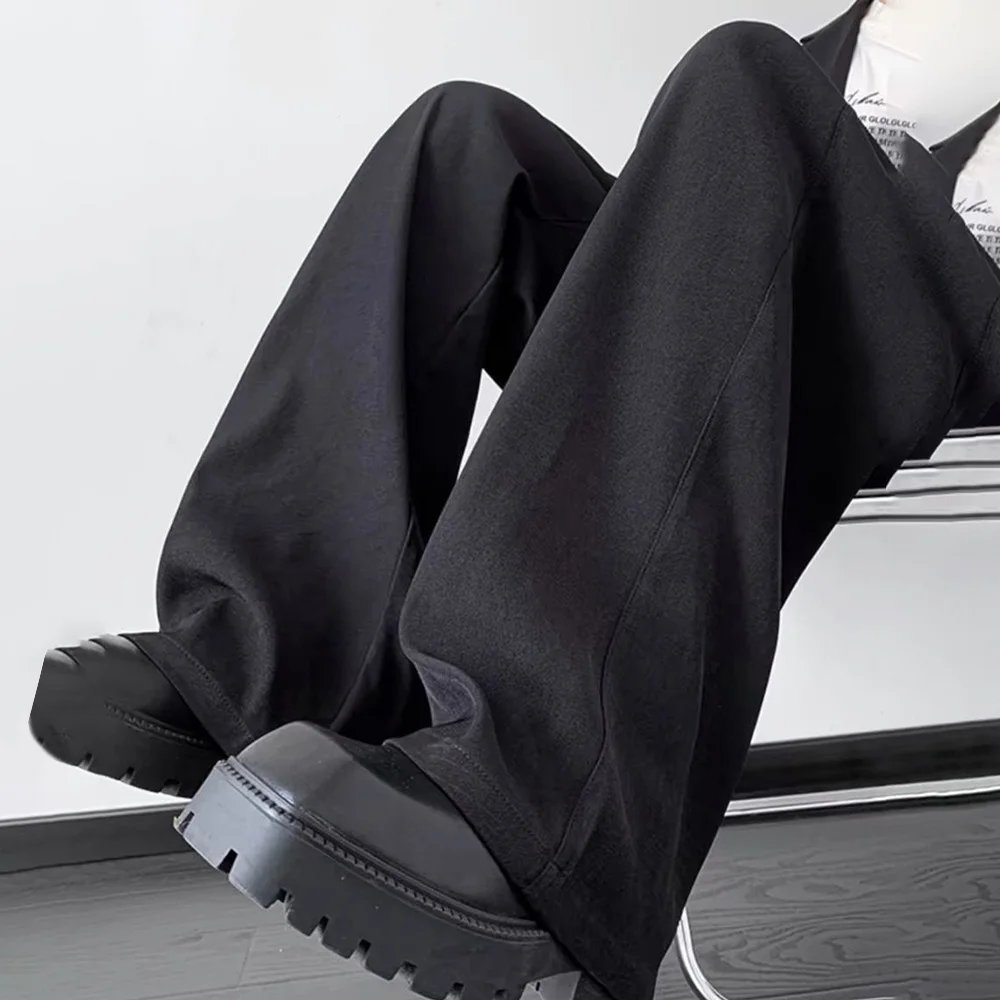 Bonsir Mens Black Suit Elegant Trousers Loose Simple Drapey Straight Leg Pants Business Casual Daily Full Length Trousers Summer