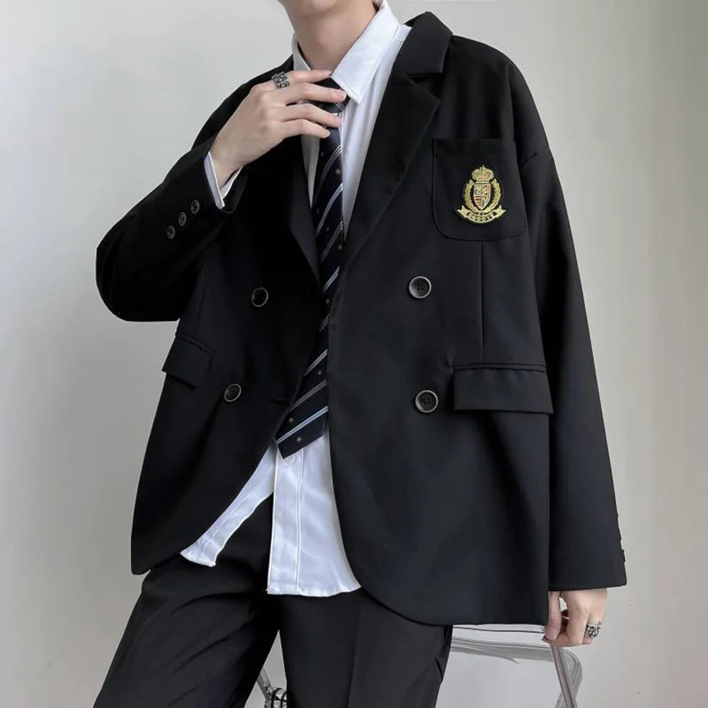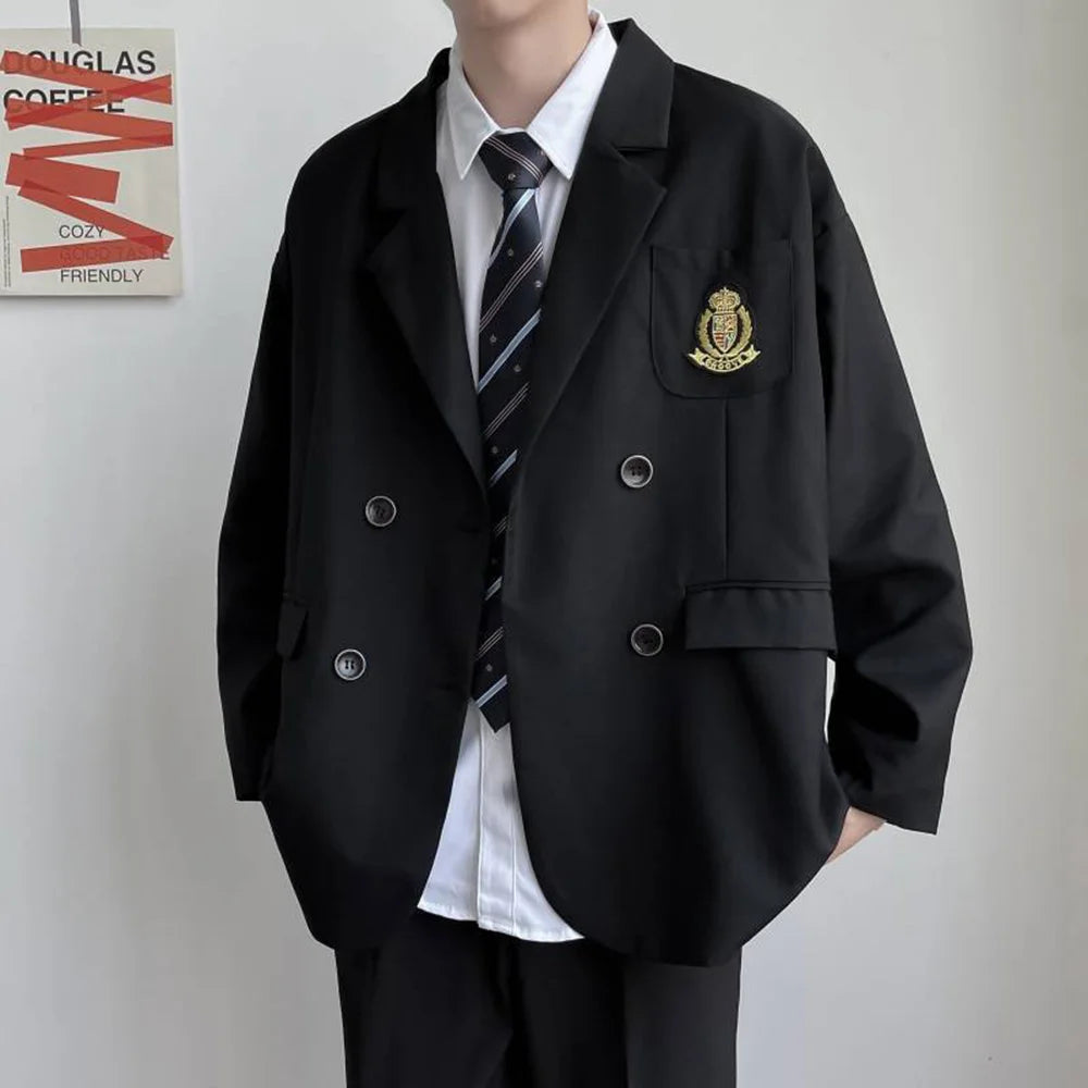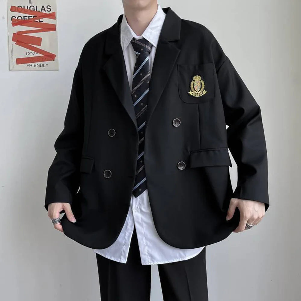 Bonsir Mens Dk Uniform Casual Suit Jacket Youthful Trend Versatile College Style Temperament High School Student Jacket Men'S Clothing