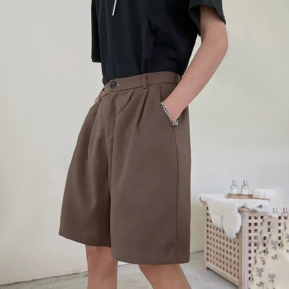 Bonsir Mens Fashionable British Suit Shorts Summer Loose Wide-Leg Y2k Shorts Trendy Drape Casual Five-Quarter Pants Mens Clothing