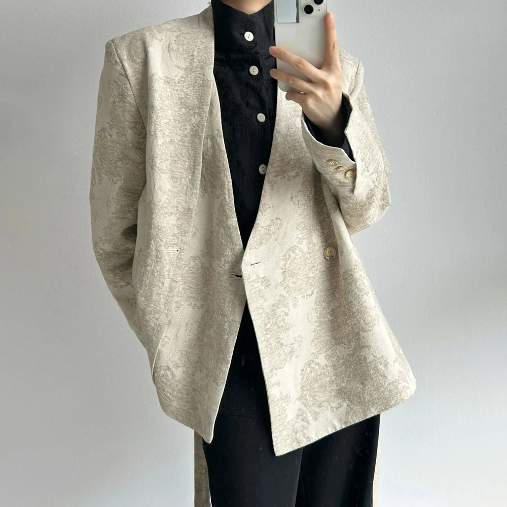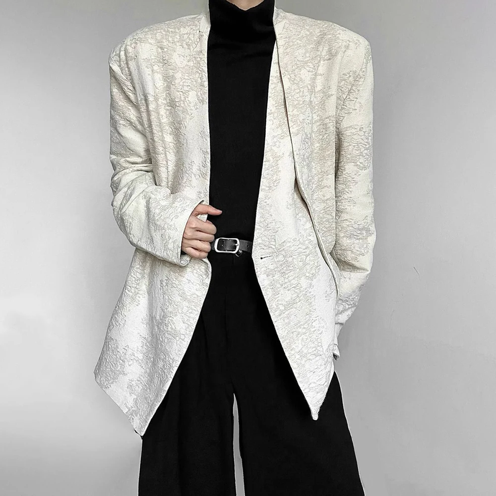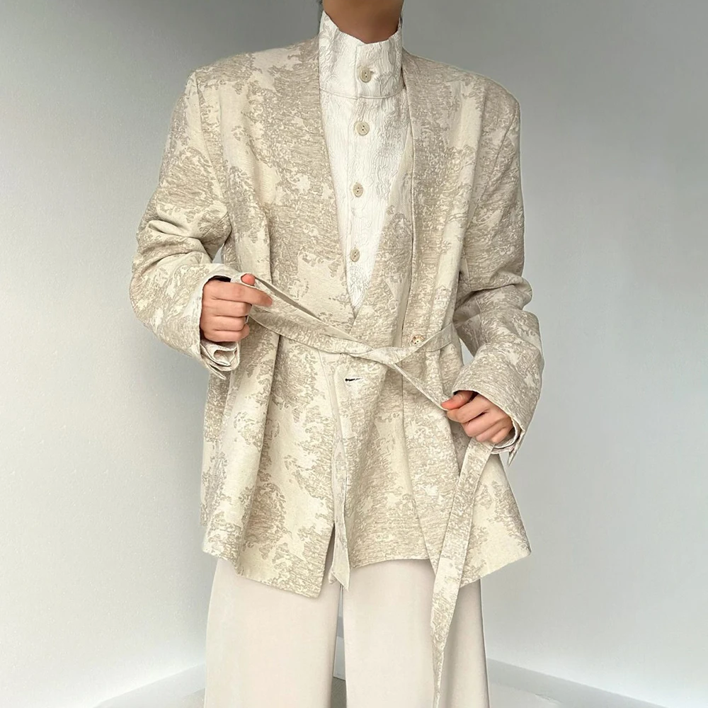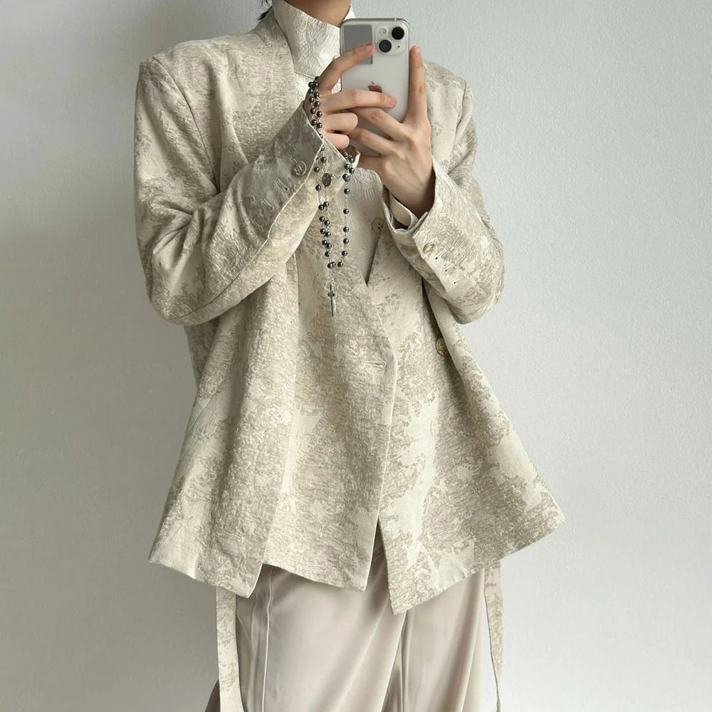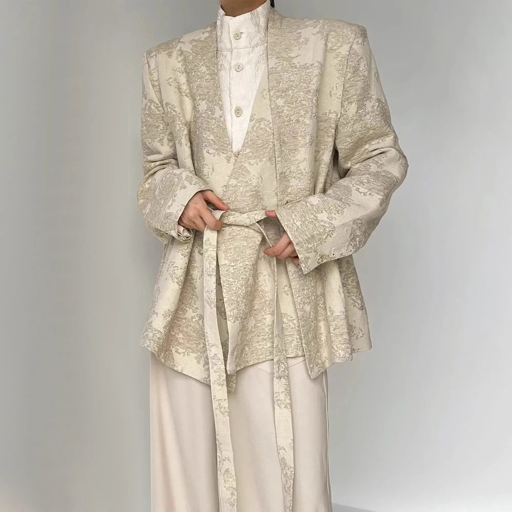 Bonsir Mens Suit Jacket Jacquard Belt Elegant Apricot Suit Genderless Chinese Style Retro Palace Campus Casual Long-Sleeve Top Unisex