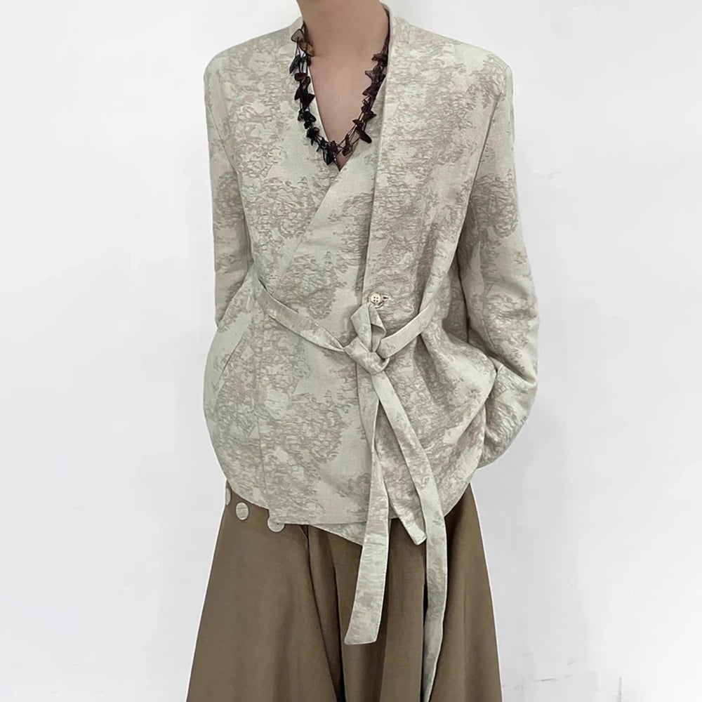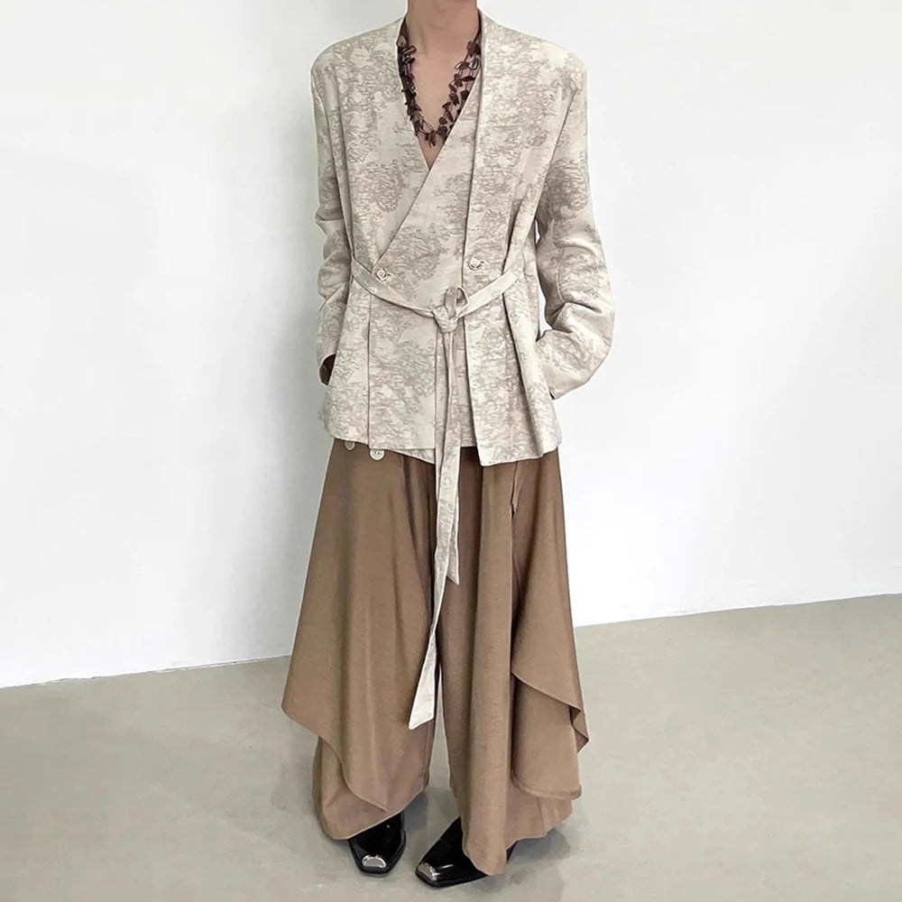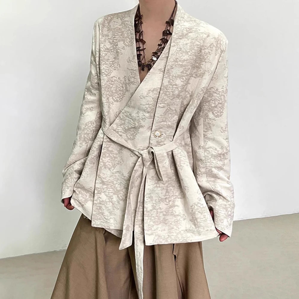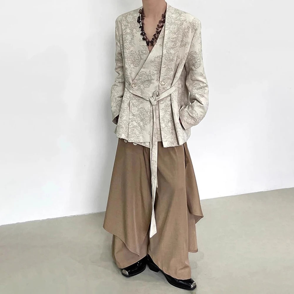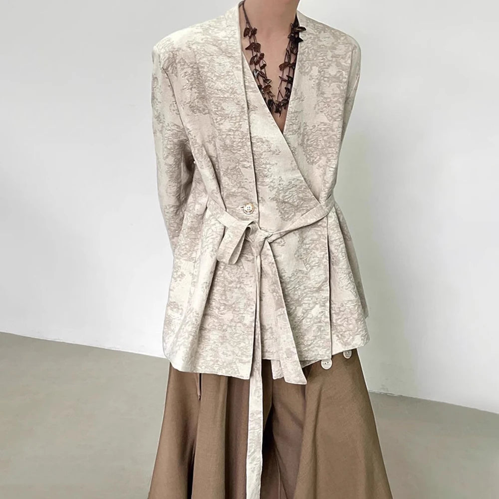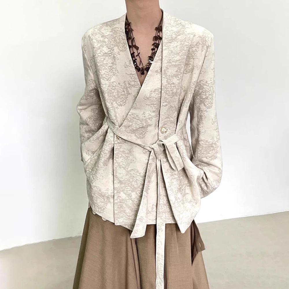 Bonsir Mens Suit Jacket Jacquard Belt Elegant Apricot Suit Neutral Chinese Style Retro Court Style Casual Long-Sleeved Top Unisex 2024