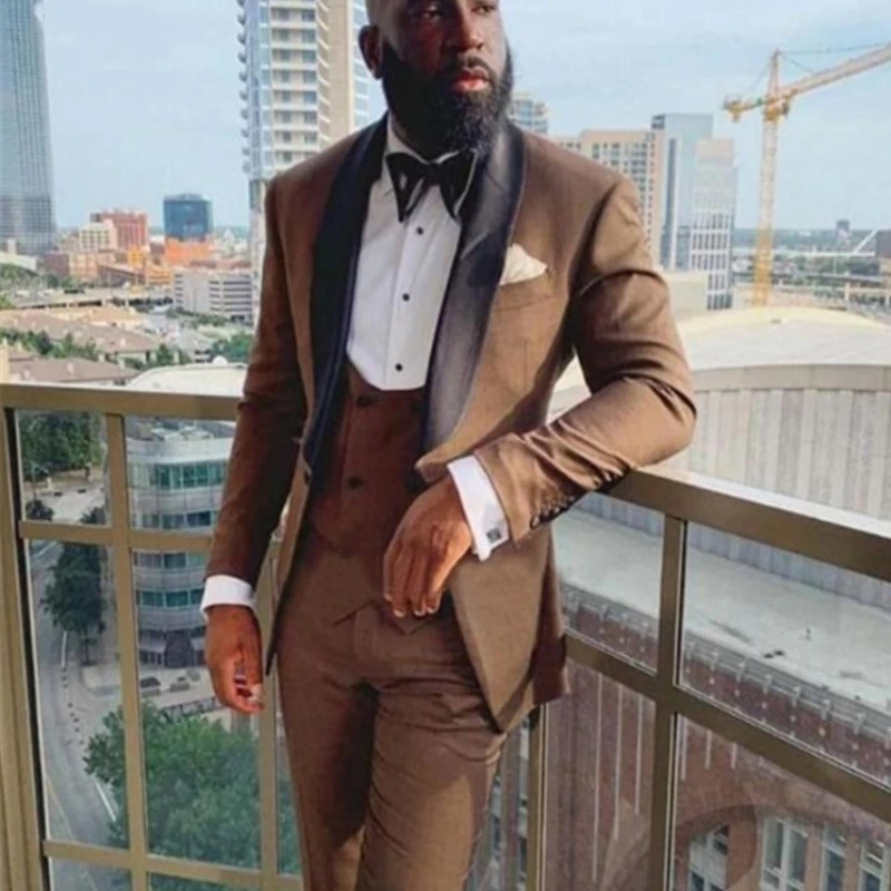 Bonsir New Men Suit 3 Pieces Shawl Lapel Slim Business Daily Fit Wedding Groom Tuxedo Banquet Work Set Jacket Vest With Pants