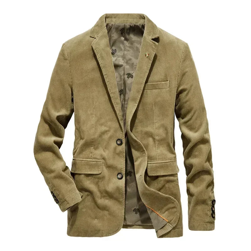 BONSIR - New Spring and Autumn Style European and American Men's Corduroy Casual Solid Color Lapel Single-breasted Slim-fit Suit Jacket.