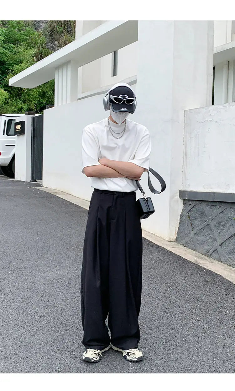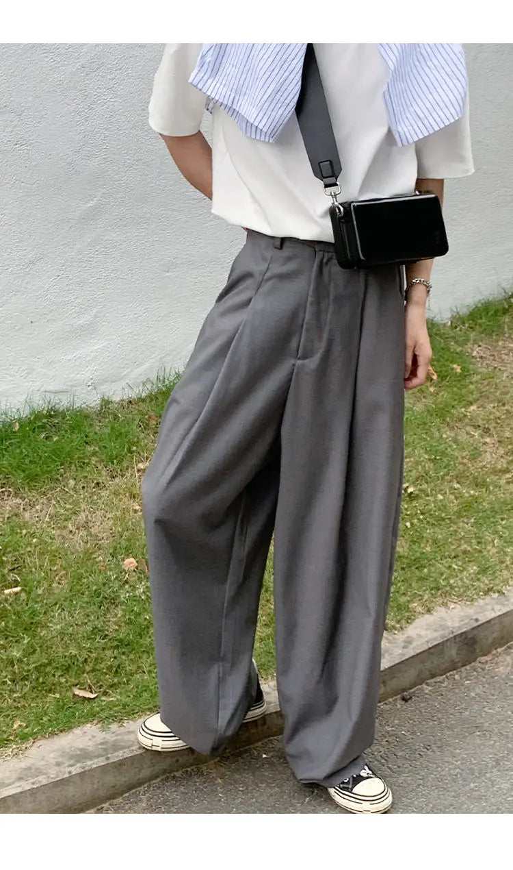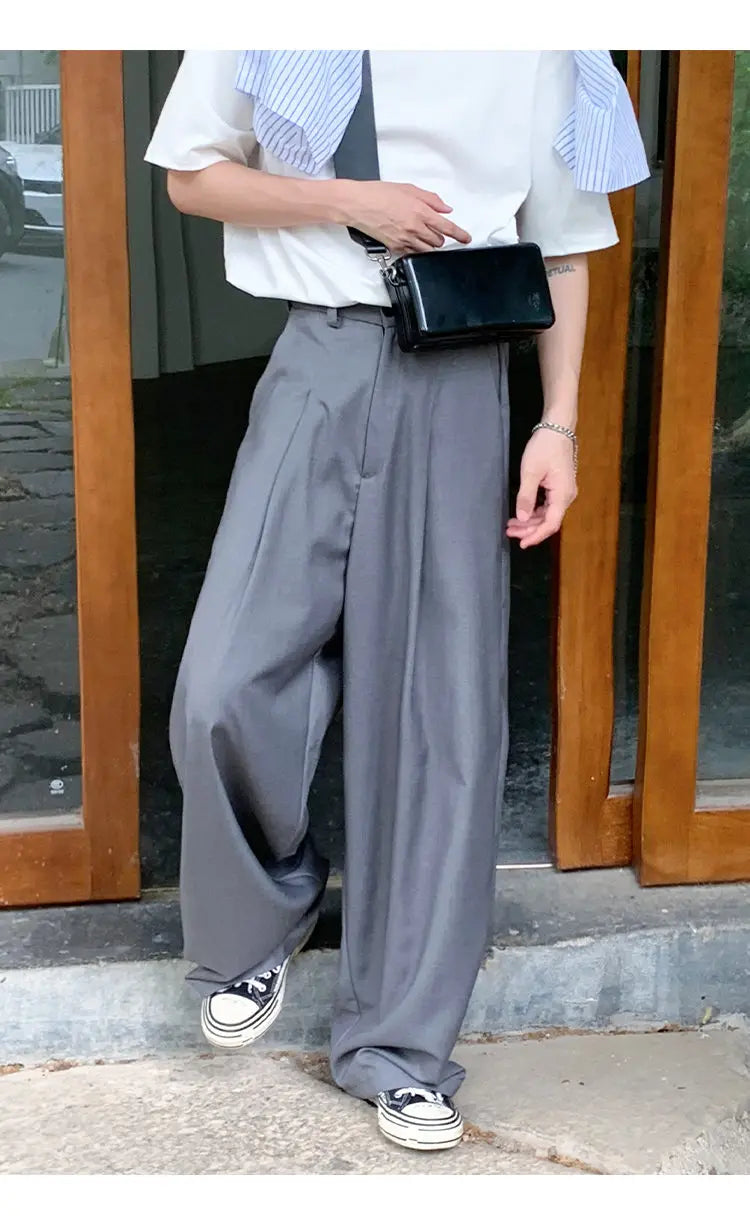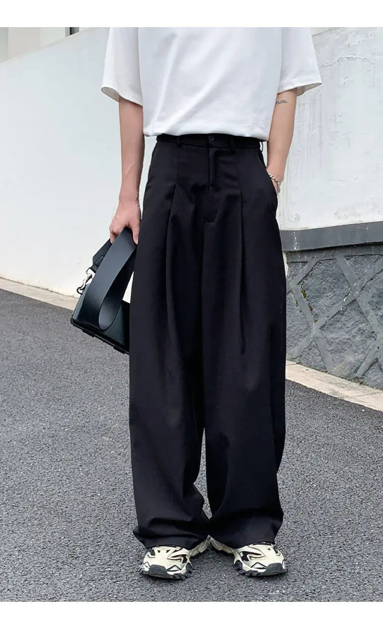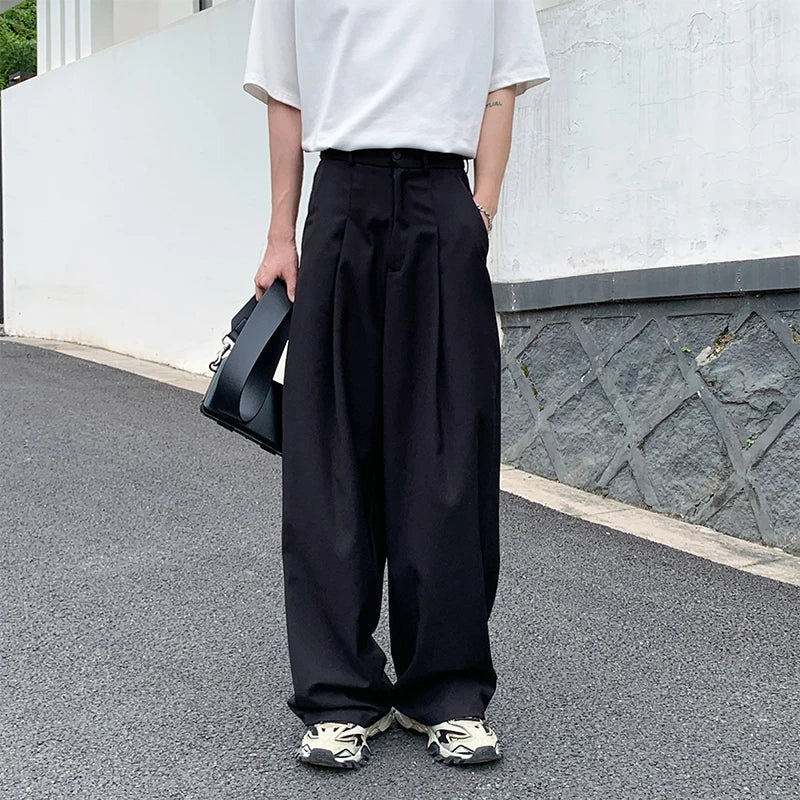 BONSIR - Oversized Black Suit Pants Men Fashion Social Mens Dress Pants Korean Loose Wide Leg Pants Mens Office Formal Trousers M-3XL