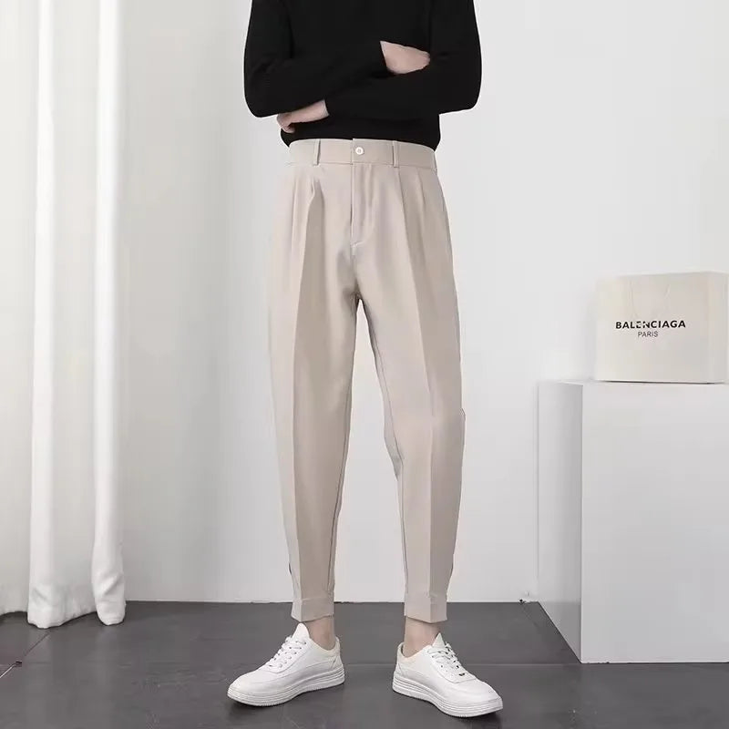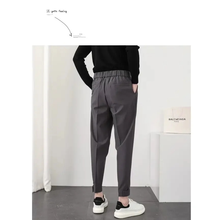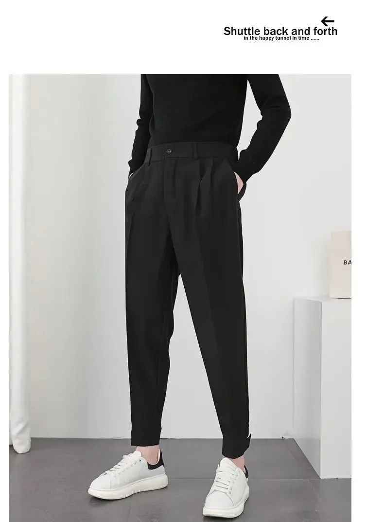 BONSIR - Pleated Tapered Men Elastic Waist Small Feet Slim Casual Pants Fashion Korean Blazer Trousers Youth Streetwear Male Trendy Brand