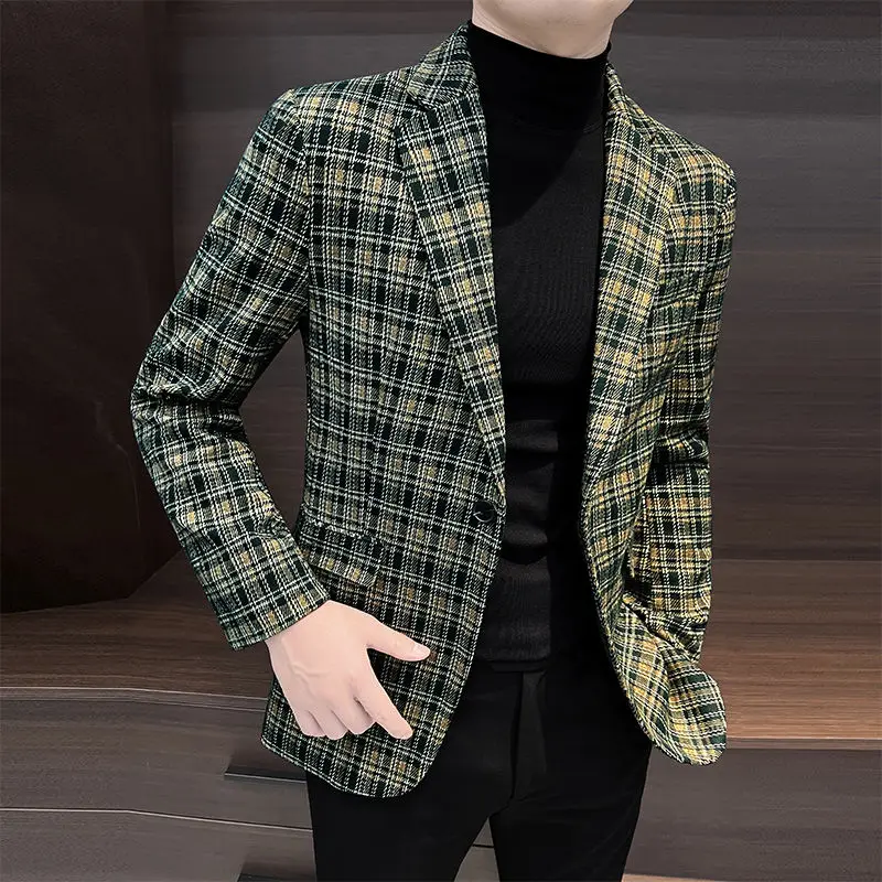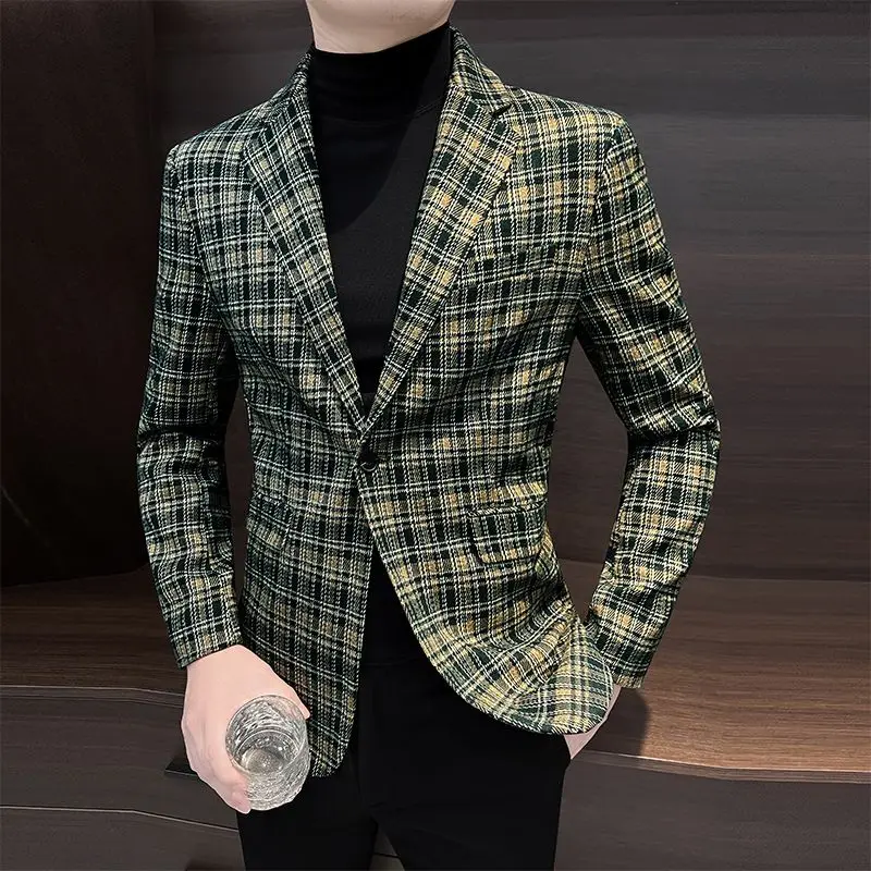 Bonsir Single Breasted Thin Plaid Man Suits and Blazers Slim Fit Original Gentleman Casual Coats High Quality Elegant Jacket for Men