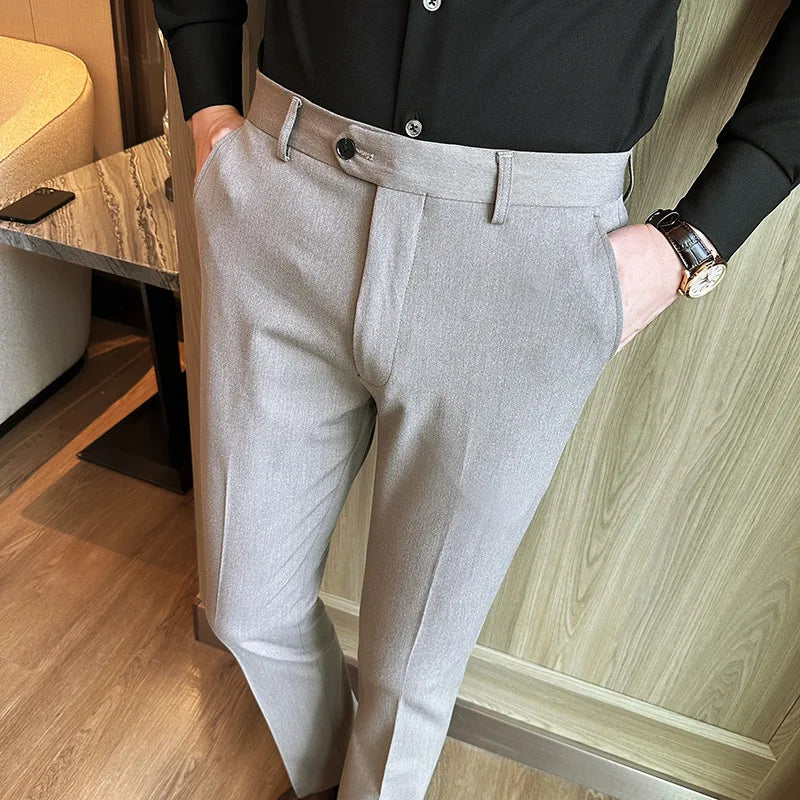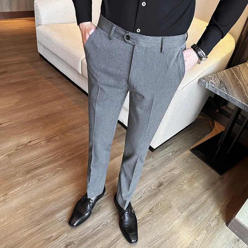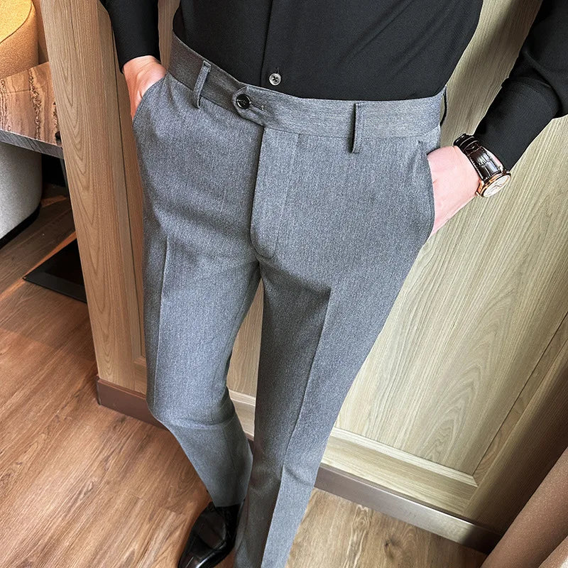 Bonsir Spring Autumn High Waist Smart Casual Dress Pants Men Belt Design Slim Suit Pants Formal Wedding Social Party Mens Trousers