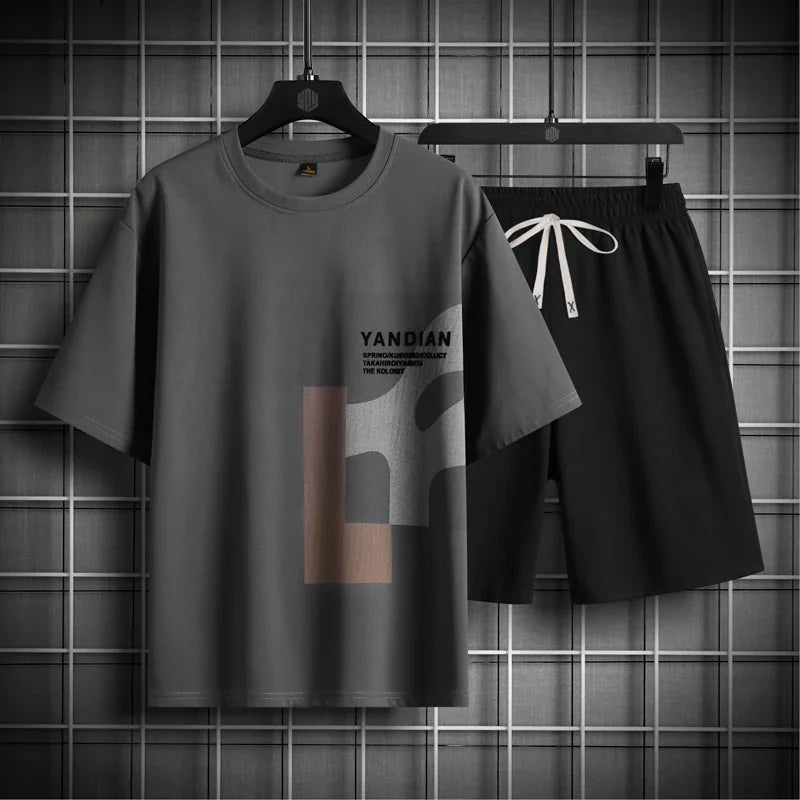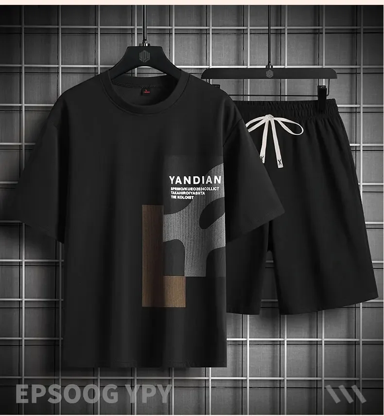 BONSIR - Summer Men's T-Shirt and Shorts Sets Casual Letter Print Two Piece Sets Mens O Neck Sports Tracksuit Fashion High Street Suits
