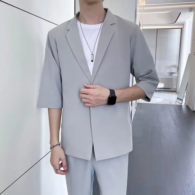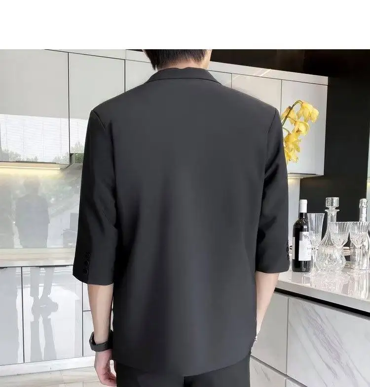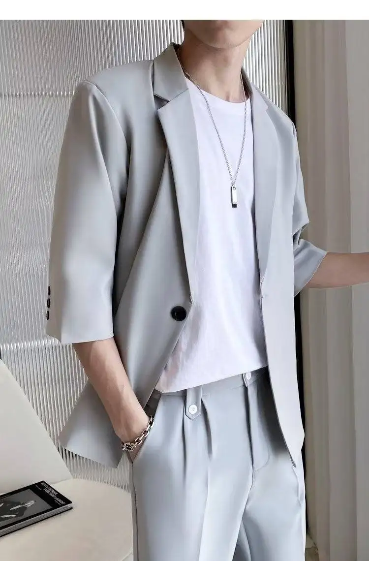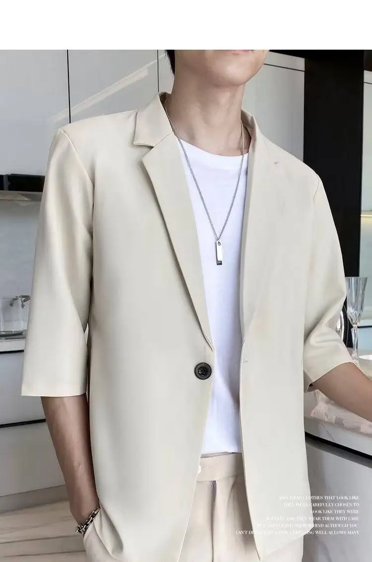 Bonsir Summer Short Sleeved Blazer Men Fashion Social Mens Dress Jacket Korean Loose Casual Suit Jacket Mens Office Formal Blazer M-3XL