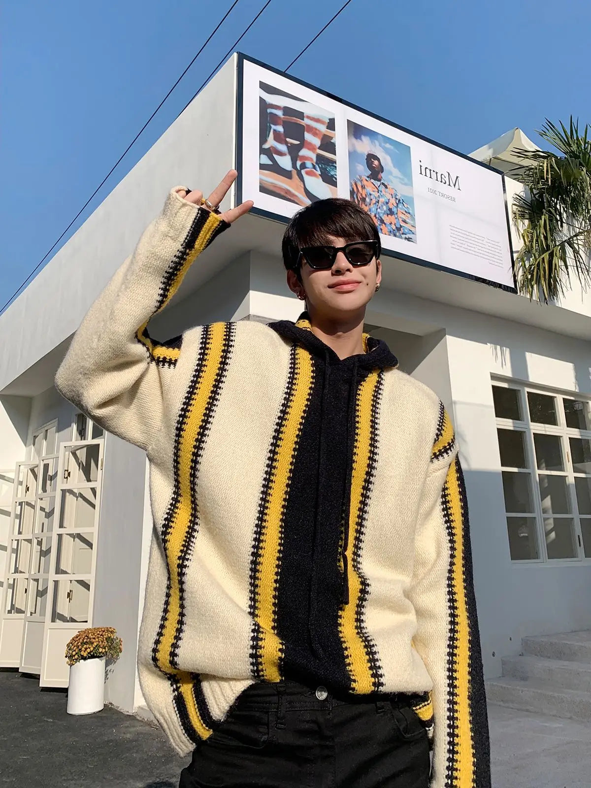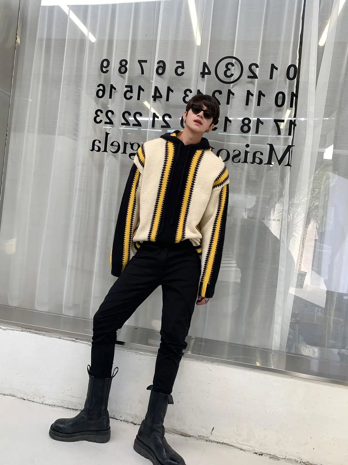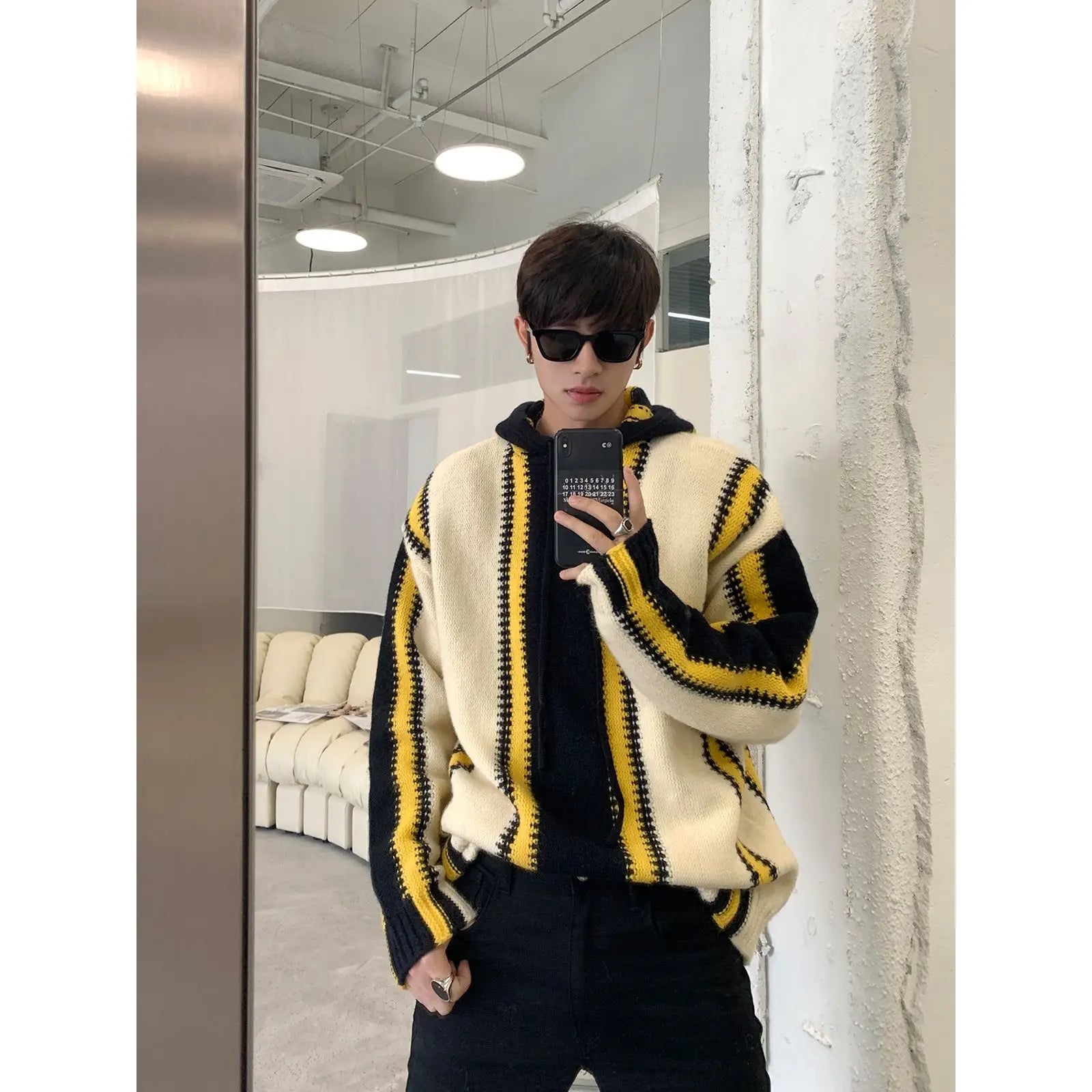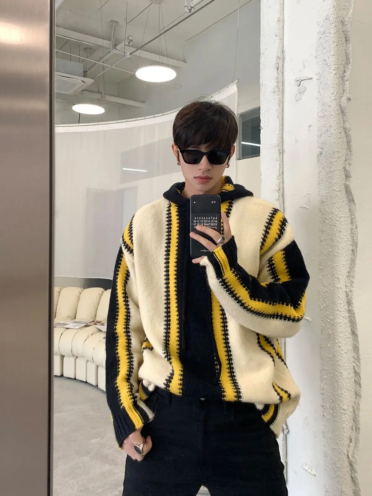 BONSIR - Autumn and winter color-blocking striped design hooded sweater for men high-end niche thickened sweater jacket